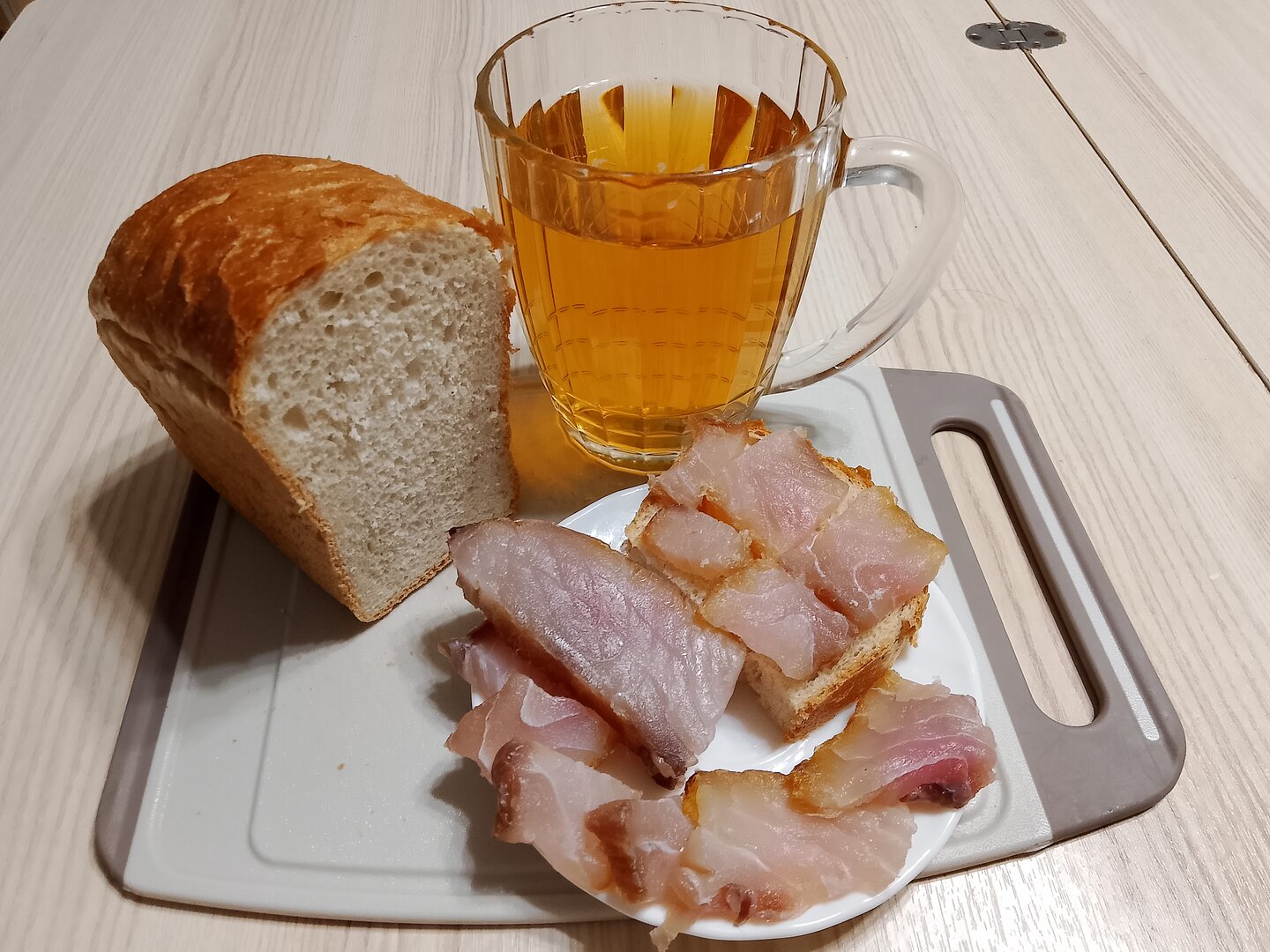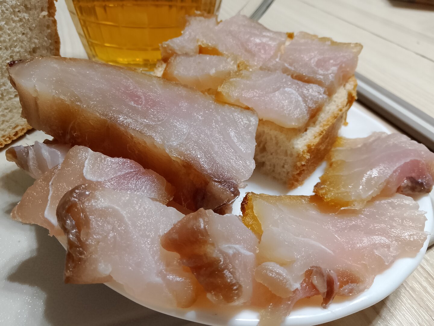 Растопил тандыр и пока он прогревался, нарезал домашнего сала, с хлебушком и усилителем вкуса 😊