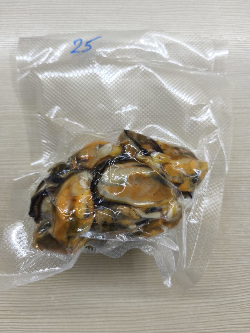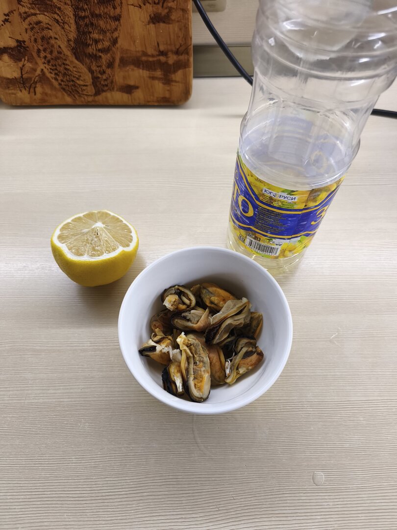 Размораживаем заготовленного в августе моллюска. Мидий собираю некрупных, раковина до 8-9 см, можно меньше - на "один укус".