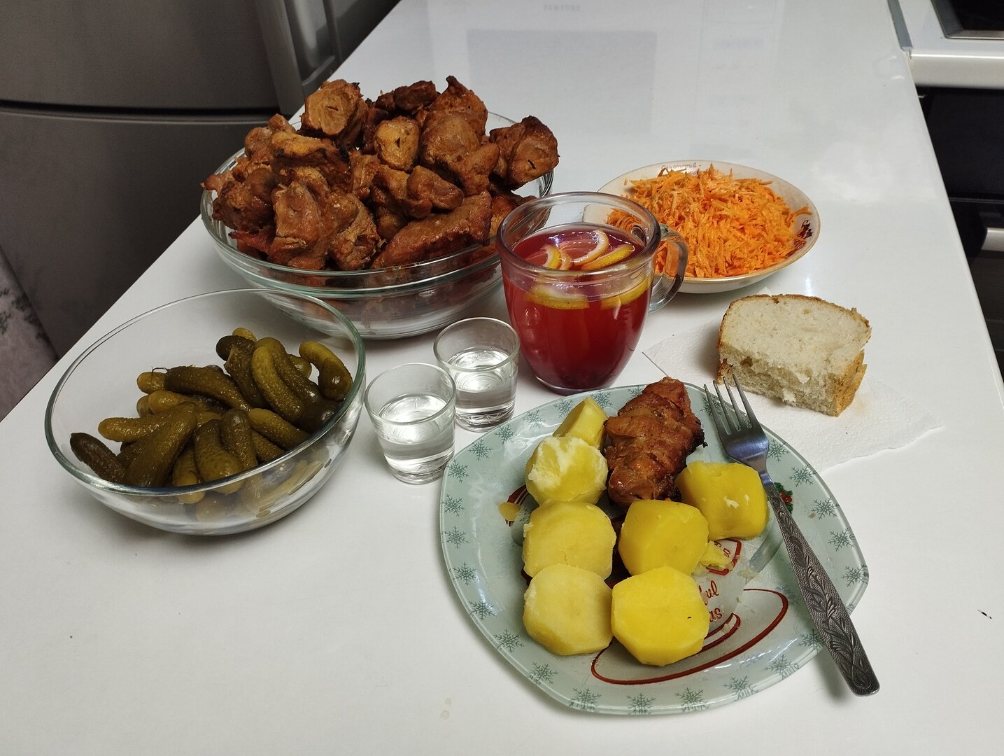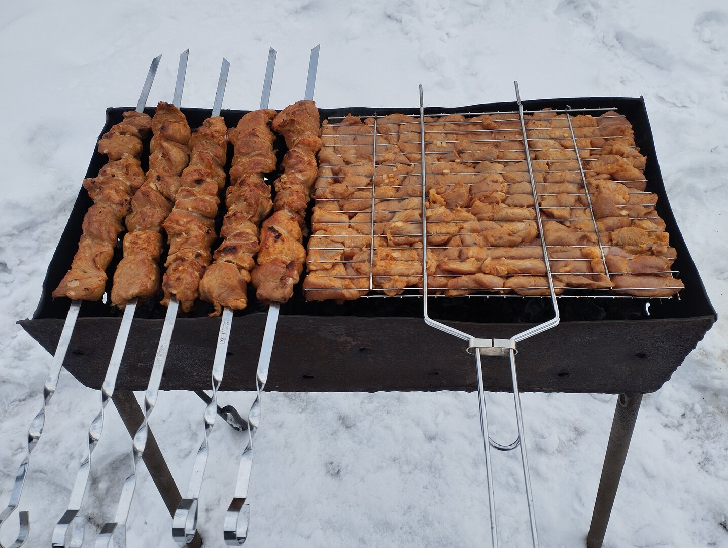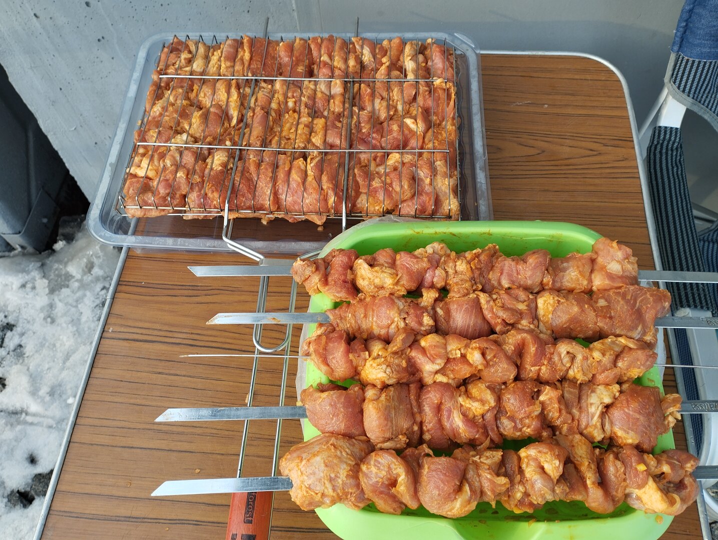 Зная, какая будет погода впереди, решили приготовить мяско, заранее замаринованное.