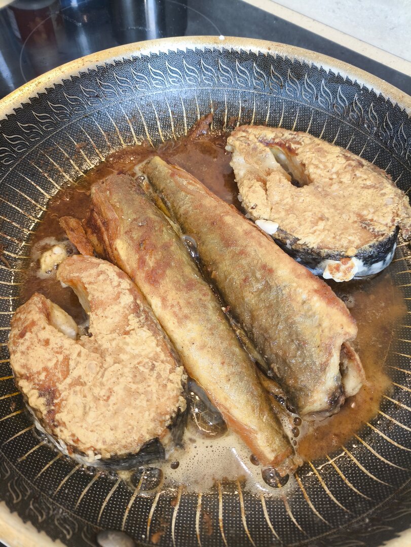 Рыбу очень тщательно чистим, режем на кусочки, укладываем в кастрюлю и заливаем рассолом ( холодным).