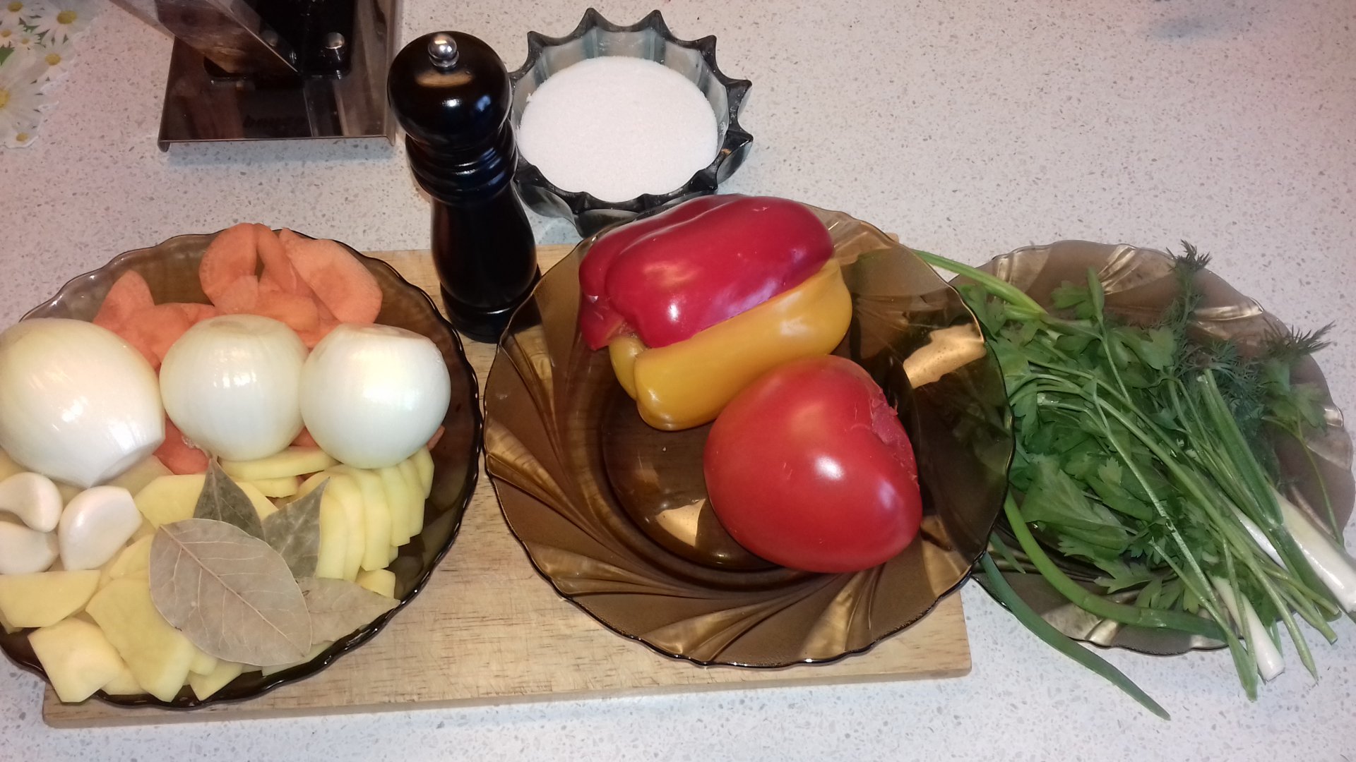 ингридиенты- змееголов, сазанЧик. Оба небольшие 2-3 кг, в биксу больше не влазят. Ну ещё зелень-мелень, картошка. Картошку чуть чуть сначала варю, а потом в шарабан.