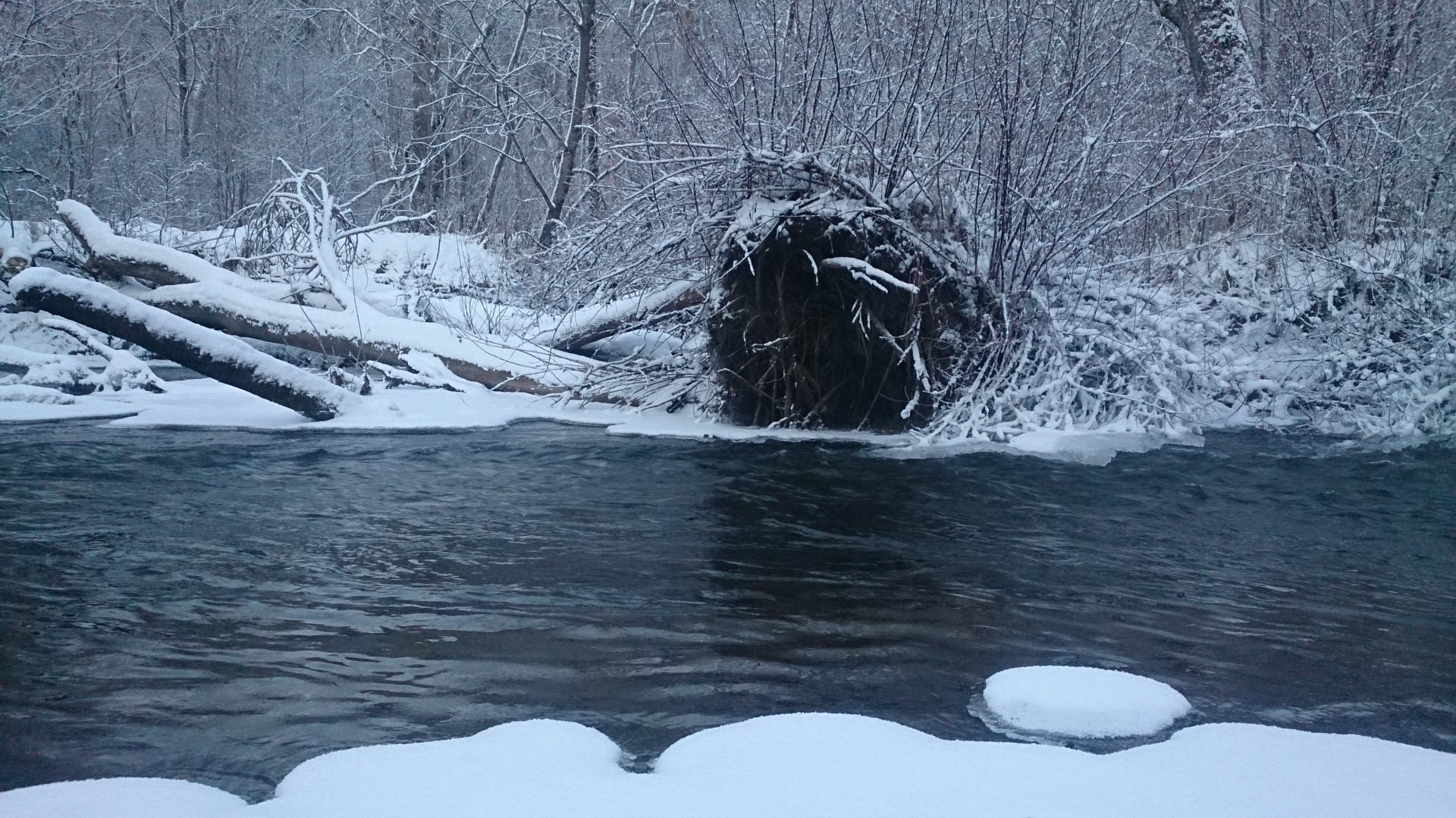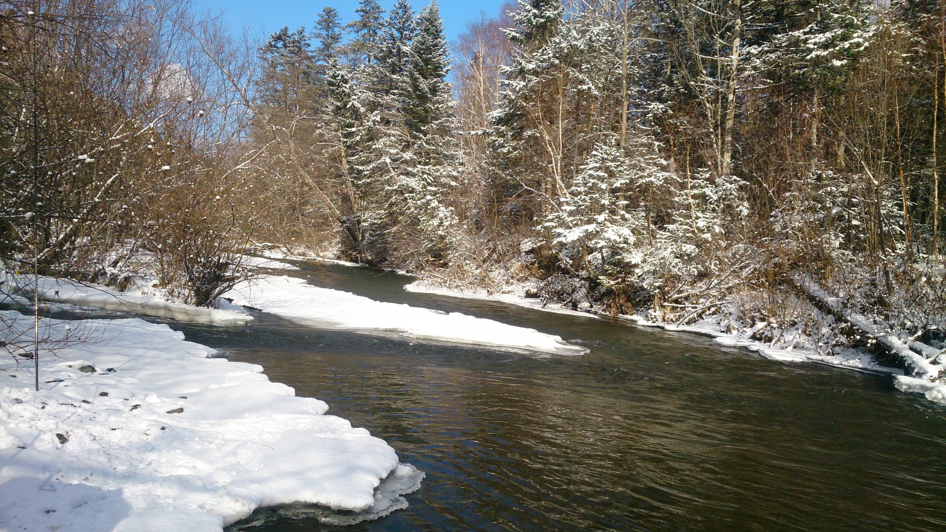 Проезжал, не обратил внимание, думаю речка должна быть покрупнее ,есть еще смысл попробовать на закрытых от снежного сала отбойниках на Хору. Вчера там слышали что ловится .