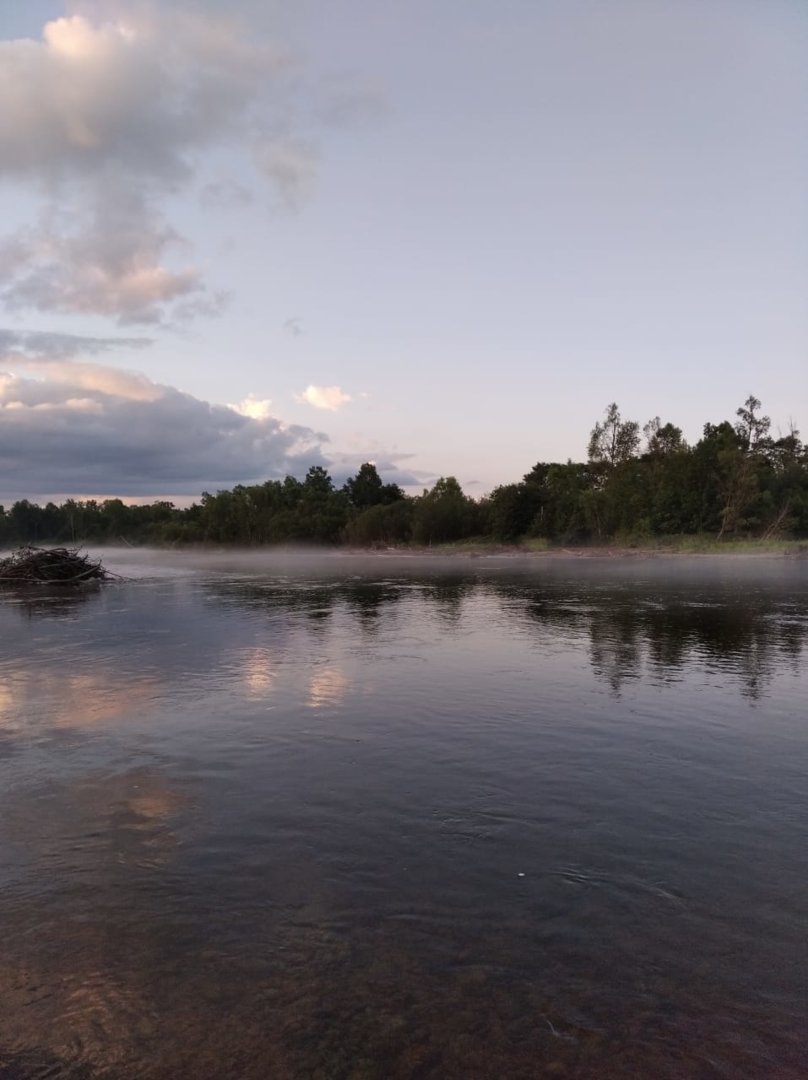Дело в том, что мне нужен немного другой формат. Я на лодке, с семьей и детьми. Хочется совместить две сложносовместимые вещи - рыбалка и пикник с семьей. Много рыбы не нужно - на уху, пожарить да с собой десяток хвостов для домашнего приготовления взять. Соответственно и места нужны такие, где было бы и место затабориться и порыбачить. Поиски проток и ключей - это увлекательно, правда, мне нравится сам по себе туризм. Но тут лодку некуда деть будет, она большая - 5 м. Оставлять без охраны тоже не вариант - далеко не уйдешь. Поэтому и прошу совета, на сколько выше нужно подняться от Третьего сплавного. Пока уверенно разведал за несколько поездок участок на 5+ км вверх, но судя по обрывкам информации, рыба где-то существенно выше. Хотя местами Хариус играет и ловится. Вчера немного удалось изловить. Вечером был красивейший туман.