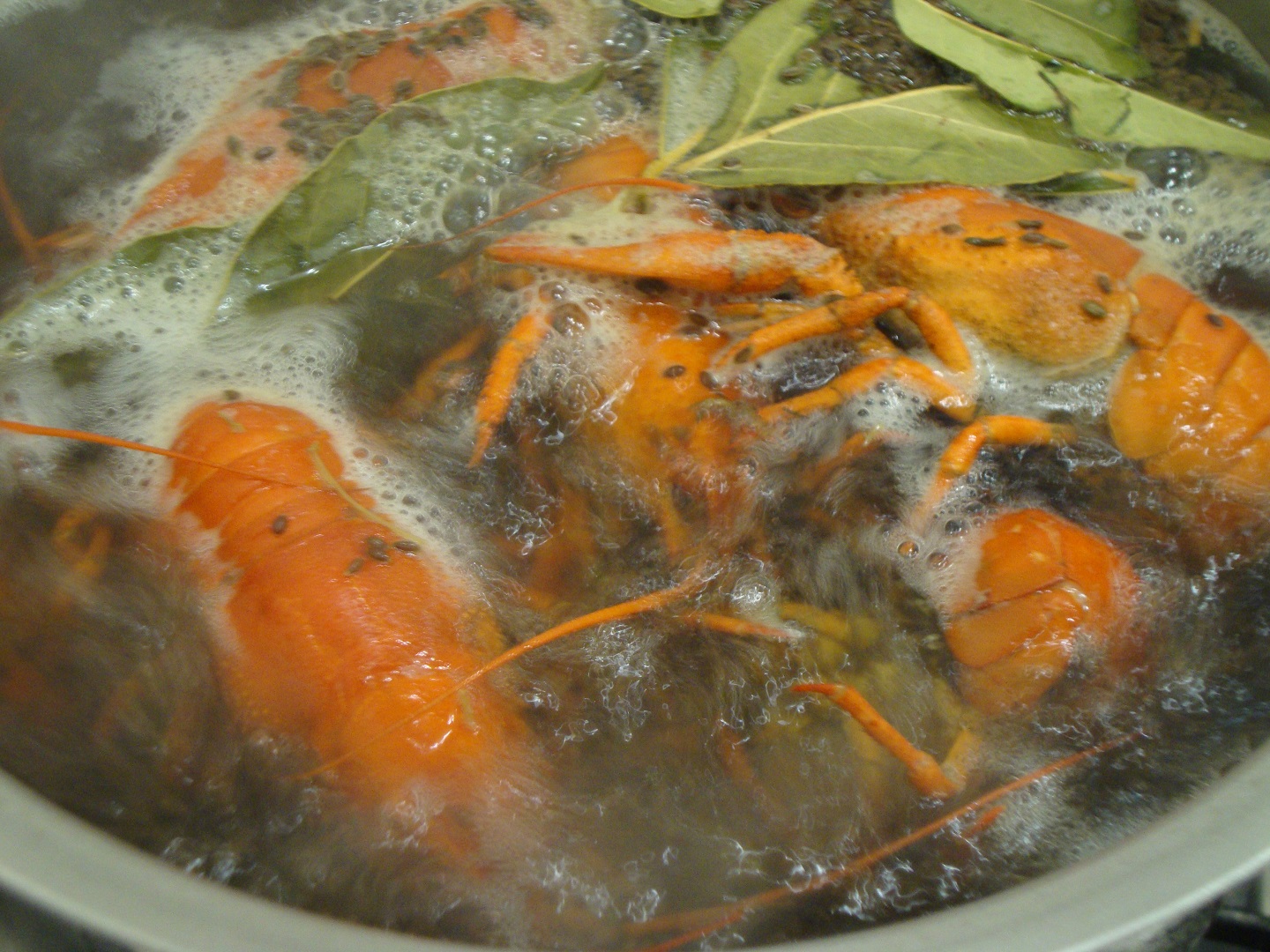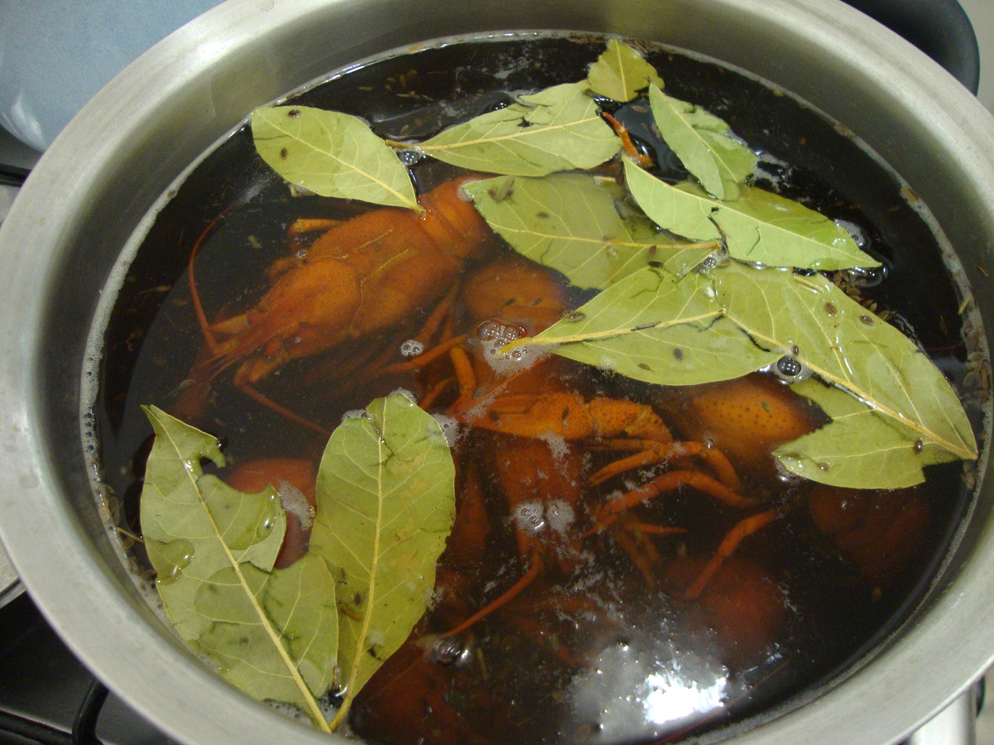 Как только вода повторно закипит, добавляем лавровый лист и варим раков минут двадцать.