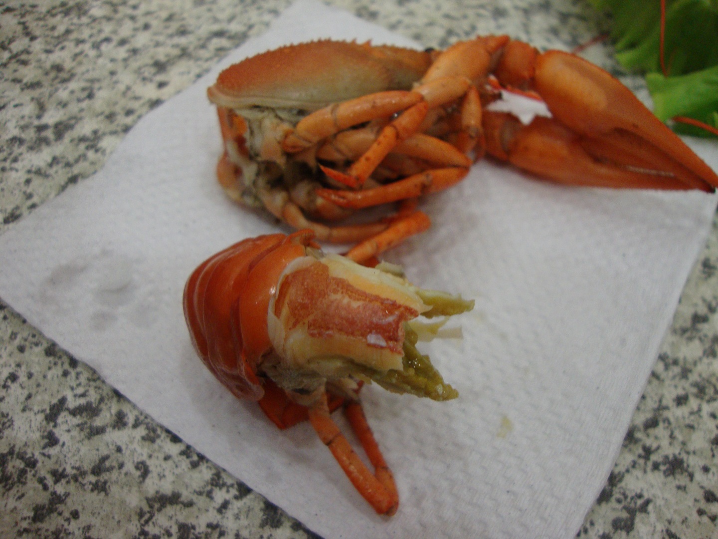 достаешь мясо. Делаешь глоток пива, или два... Заедаешь мясом с хвоста, зажмурившись и стараясь сосредоточиться на ощущениях...Отрываешь клешни, и высасываешь мяса в прикуску с пивом. ... Делаешь глоток пива, или два. На внутренней поверхности панциря остается белый жир, его съедаешь....На ..внутренностях тоже сверху есть белое мясо. Его тоже съедаешь, зажмурившись ....