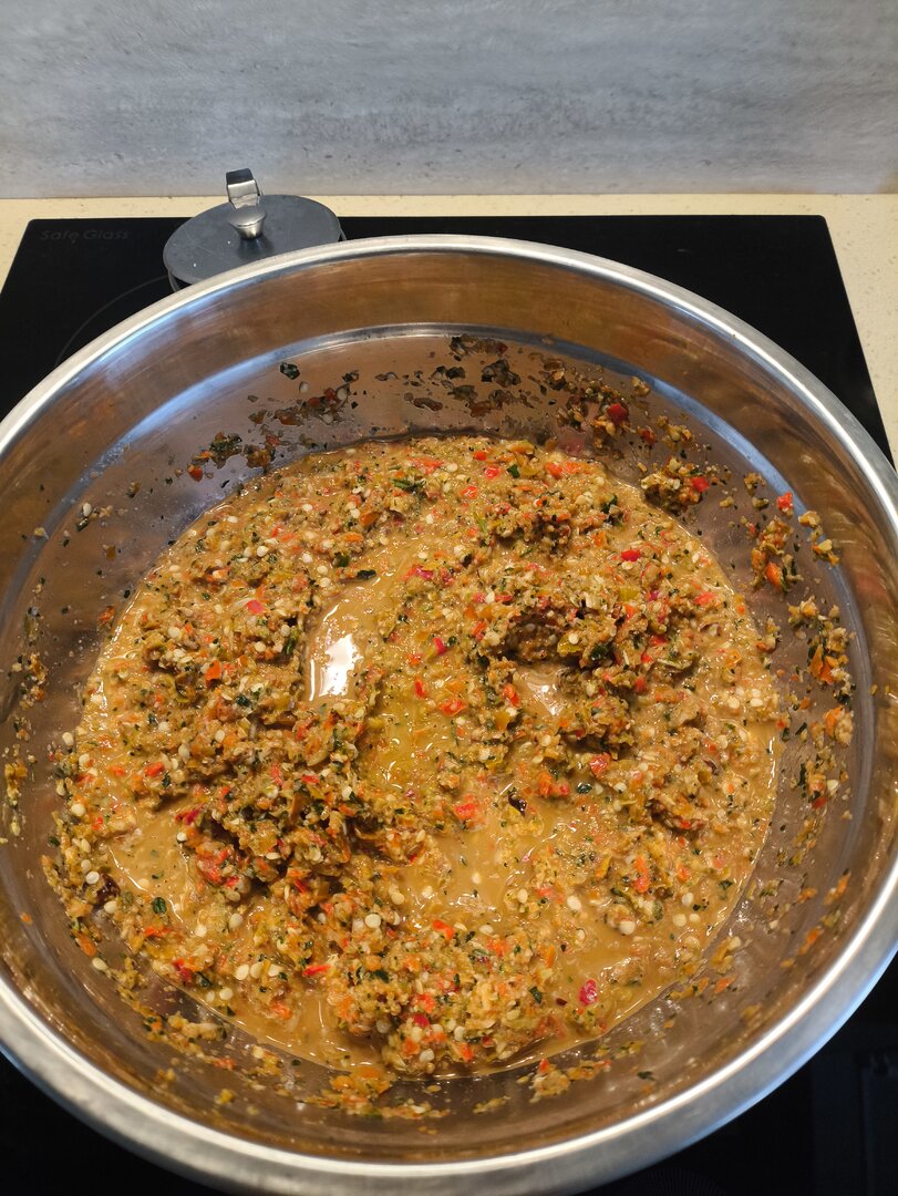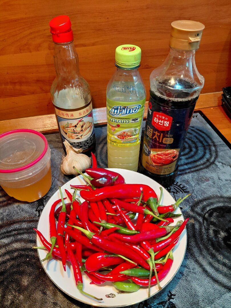 Крошишь перцы острые, на пол объёма рыбный соус, (китовский анчоусный ), пол объёма - сок лайма из Самбери, 3-4 ложки меда, чеснок мелко, ложку соли, 2 ложки соевого