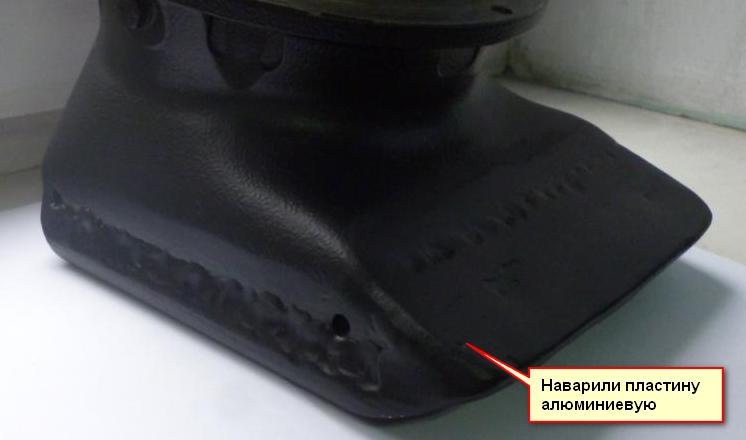 Такая наварка убила двух зайцев, усилила водозаборник, и позволила поднять мотор примерно на 2-3 см.
