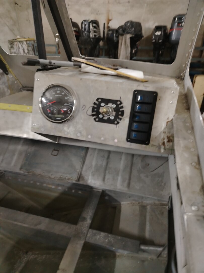 Обнаружилось еще одно "узкое место". Крепление приборной доски, слабое справа. Только верх уголка, из-за необходимости протянуть рулевой трос. Когда скачешь по волнам и держишся за штурвал - это не есть хорошо. Поскольку может деформироваться правый нижний угол панели. Поэтому нижняя крышка под панелью будет не свободно откидывающаяся, а прикручена на 6 винтах, что даст общую жесткость по всей коробке консоли.