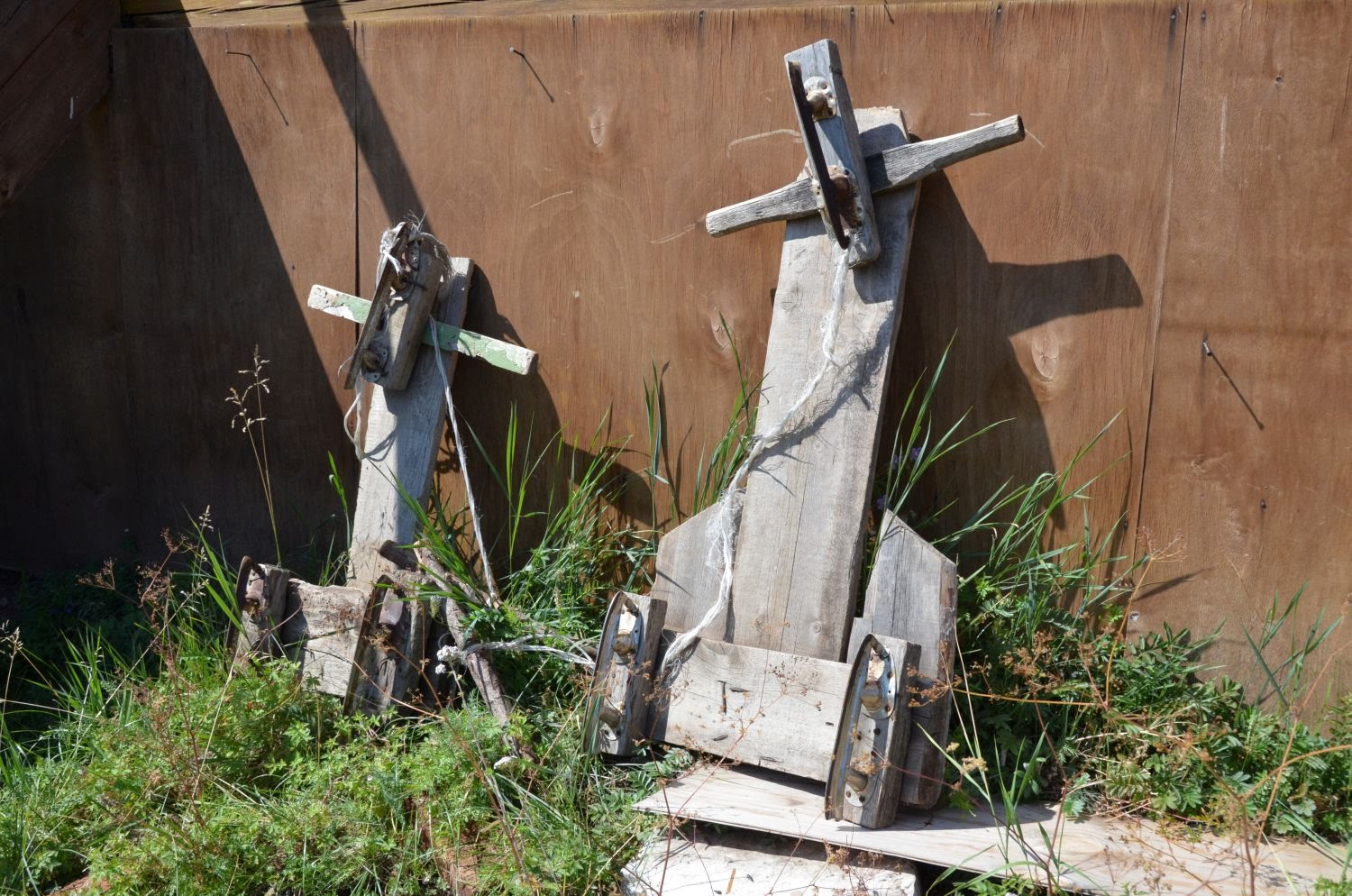 Я САМ в 11 летнем возрасте делал такие, которые с управлением, только вместо лезвий были бруски обитые жестью и катались на них с обычных сопок забайкалья. А те, что на лезвиях назывались тЫчки. Из за металлических палок для отталкивания. Особым шиком считалось кататься на тычках, между лезвиями которых проходил коробок спичек 5 см. Катались по замерзщей речке, снега в Забайкалье мало, речки замерзают ещё до установления снегового покрова, часты ветра и снег не задерживался на гладком льду, лёд всю зиму чистый.
