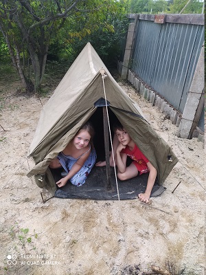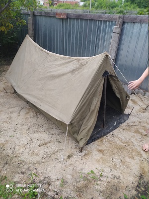 Есть такая. Поштишта новая. Берегу. Ибо.Показал внукам свою первую палатку . В 70ых казалась очень просторной , а сейчас шатёр 3 на 3 в обрез хватает .