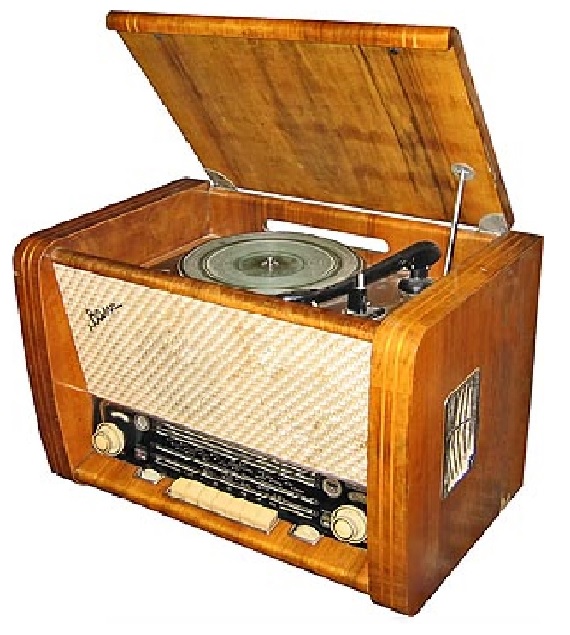 У дедушки и бабушки вот такой аппарат был. В детстве в конце 60~х, я крутил на нём пластинки, вставая на стул. В 90~х притащил его на работу, как приёмник он ещё послужил в мастерской.