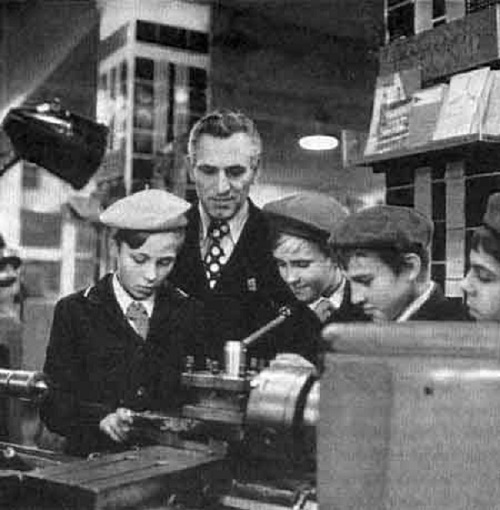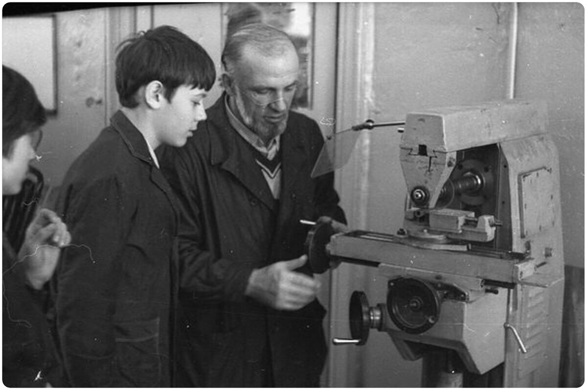Были ещë слесарно токарно фрезеровальный участок - с полным перечнем первичных станков, мастерские автодела - с набором узлов и деталей машин, кабинет военного дела с оружейной и набором средст ГО, домоводства - со своими классами кухни с полным фаршем оборудования и такой же - шитья. И был ещë класс электрики/радиоэлектроники. И всë это - сблокировано с приличным таким по размерам - спортзалом, в отдельно стоящем комплексе мастерских. И всë это было у ОДНОЙ СШ номер 27, над которой шевствовал завод Горького.