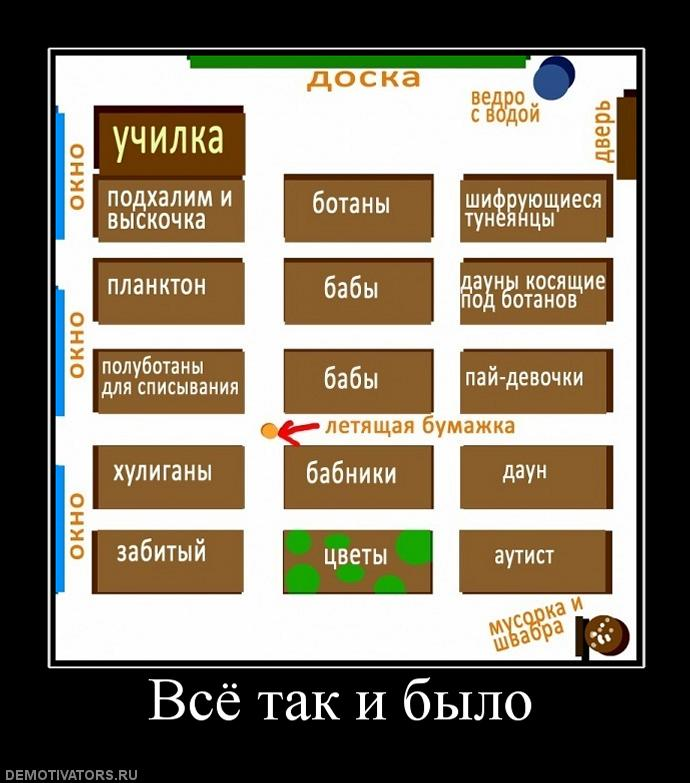 У нас, в краевом центре, от таких парт только в году 80-81 стали избавляться, да и то только в старших классах. Поэтому такая рассадка