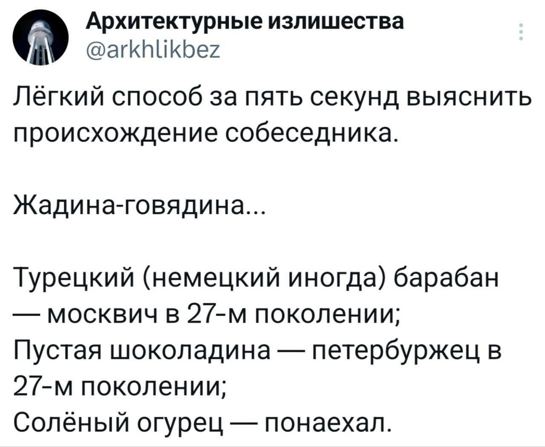 Саша Белов тему выкладывал, если не ошибаюсь. Но, строго говоря "понаехавший" продолжит: ...на полу валяется никто его не ест.