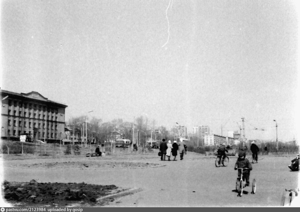 Апрель 1975 года. Слева - здание "Гражданпроекта", прямо - городок Главного управления Дальневосточной железной дороги (ГУпр). На горизонте - строительство нового здания "Гражданпроекта".