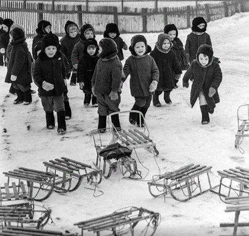 Наше детство в 70-80-х было, поэтому дурацкое неудобное пальто и кроличья ушанка:)
