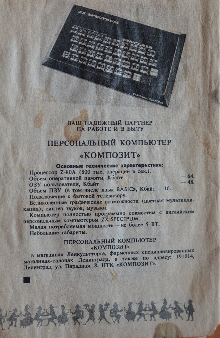 А вот этот ZX SPECTRUM сам собирал и отладкой тоже занимались. В кризисные 90-е.А в ней реклама школьной мечты: