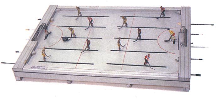 У брата настольный хоккей был КРУТЕЙШИЙ, никогда такого не видел больше нигде. Потом мне по "наследству" достался... По-моему, вот что-то подобное. Не совсем такой, но похож. Некогда сейчас лазить искать.Вот ещё чё было дома