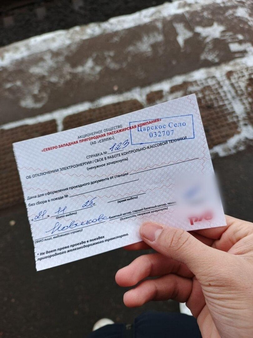 В Санкт-Петербурге и области людям вместо билетов на электрички от руки выписывают справки, потому что на вокзалах больше не работает интернет.