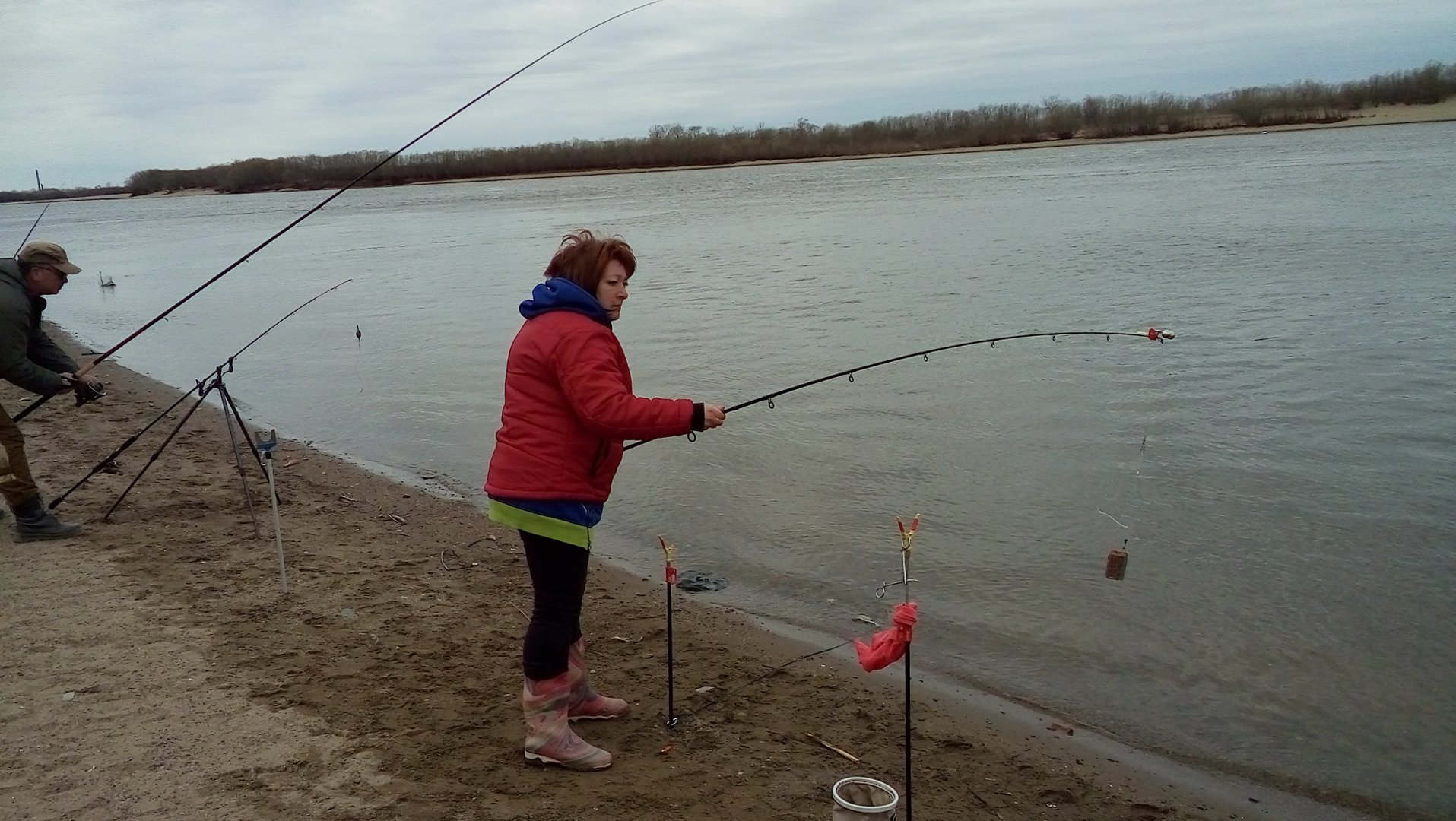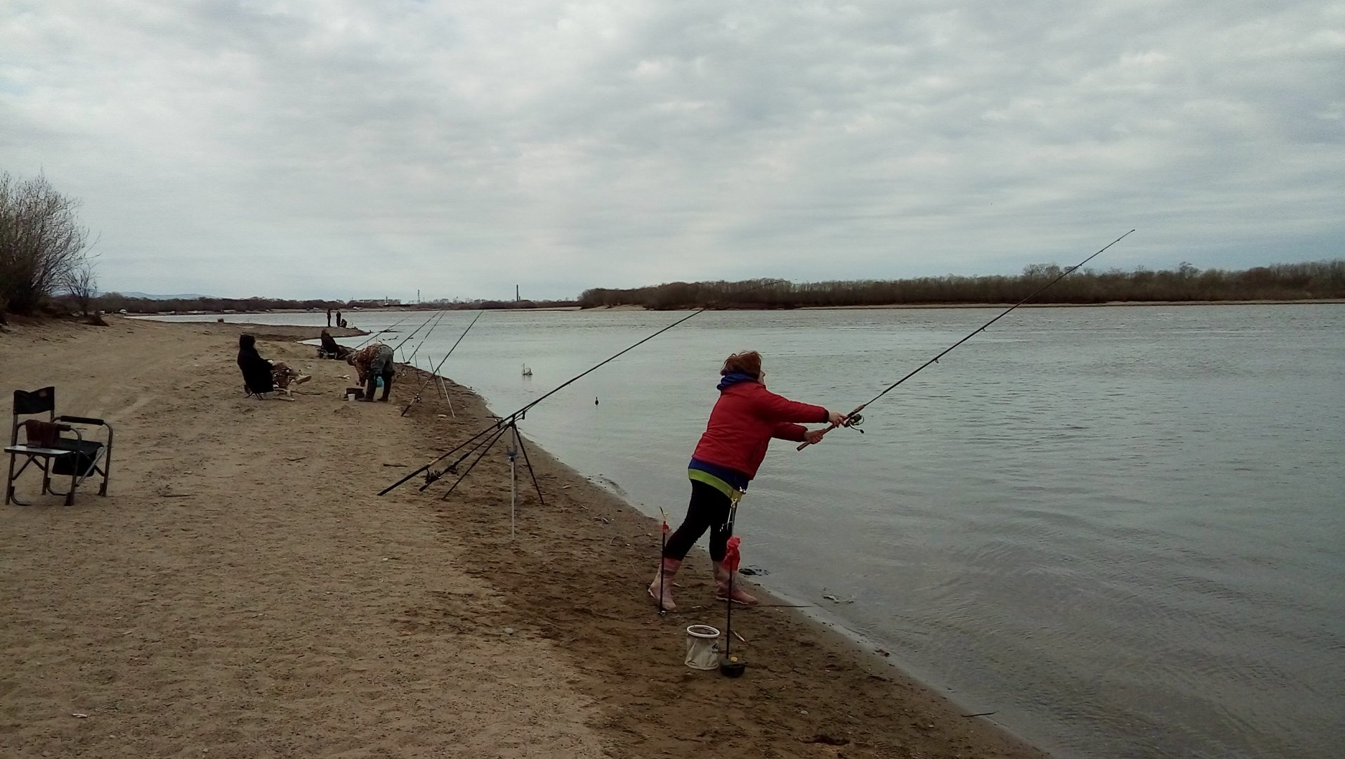 прибыла, закрыла косу расположенную выше по течению. по итогу рыбалки - вынули из воды 15 карасиков и пару касаток на тро