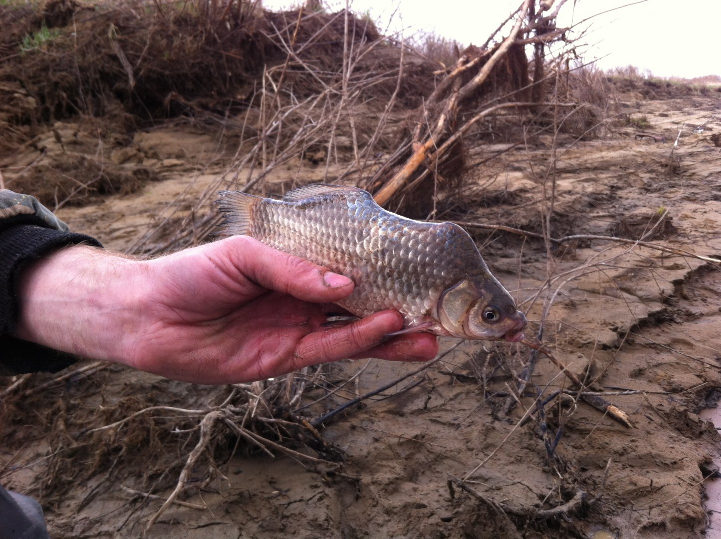 были с Андреем Б на одной из проток Тунгуски. Ездили с ночевой. Рыбачили по 2 спиннинга, один на червя, второй снаряжен на нарезку. На нарезку ловились караси, щуки, сомы, зато на кукурузу исправно ловилась касатка, да крупная. Совсем караси оголодали, а касатки разгурманились. Щуки исправно ломали крючки, отгрызали поводки. Причем на блесны, воблеры и джигголовки вообще не реагировали, но на резку клевало больше, чем на червя. Спиннинг постоянно пытался удрать с рогатки в воду. Зато с 7-00 до 8-00 утром караси здоровые клевали, да по 2 штуки, потом затишок, а после 10 опять расклевались.