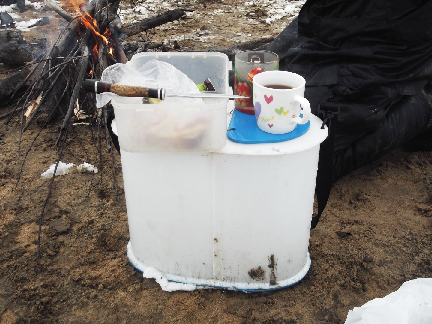 Когда не где укрыться костерок выручает.