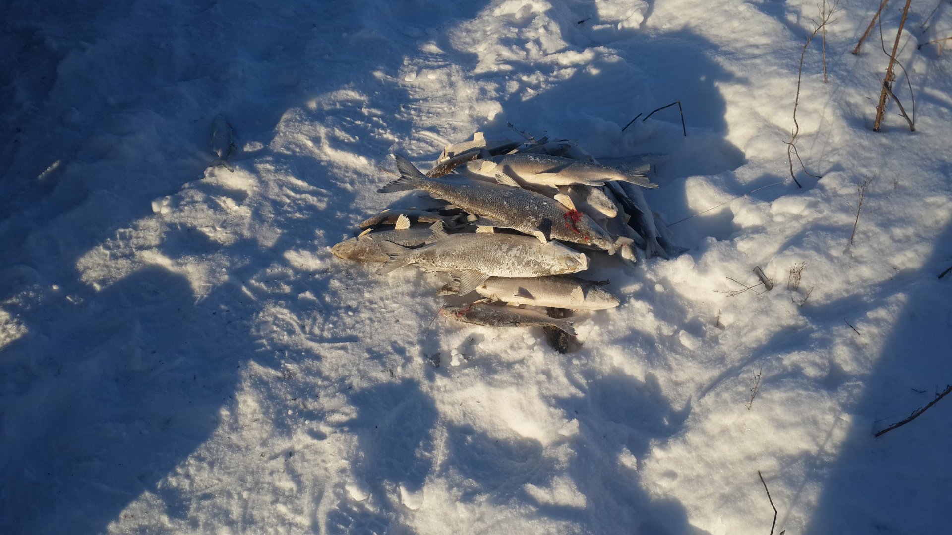 У меня так только с 15-00 стали достойные экземпляры стали попадаться, а до этого размером с корюшку как из пулемета...Дубак сегодня - даже сопли в носу замерзали. Про лунки молчу - весь день бодрил их пешней, колотушка не брала.Сегодня таки выбрался погонять сижка, клевало как из пулемёта. Вот такая скромная кучка с утра до обеда, сверху естественно самые большие. Активность была с 10 до 14 без перерыва.