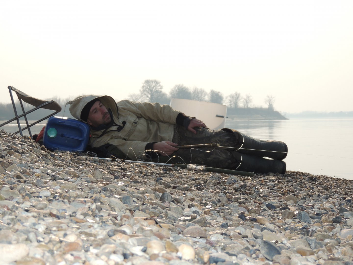 Тёзка,у нас сегодня погодка была тоже с утра классная,после ветров штиль полнейший.Правда,утром конкуренты меня на машине опередили,но места с таким спадом воды стало много места и они ушли ниже.А встал на прежнем месте,на перекате и не прогадал.