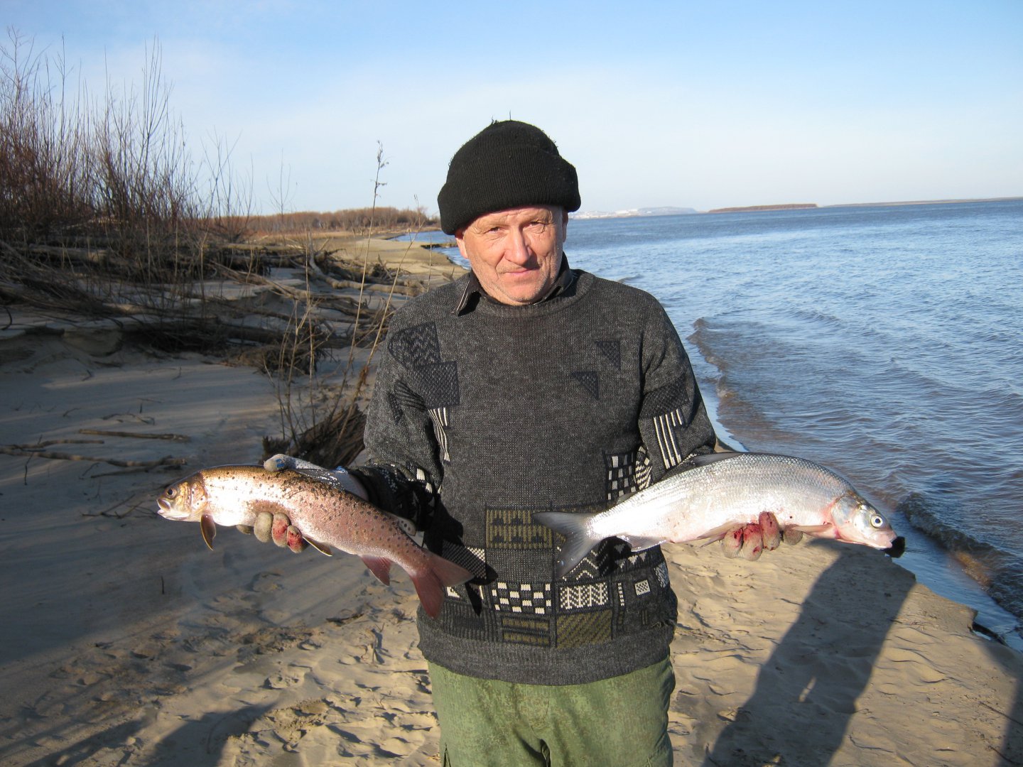 Вышел на берег,никого нет,шуги на Амуре тоже,что не расстроило.Занимаю места козырные и жду напарника.А ветерок на берегу довольно неприятный,единственный плюс,что попутный забросу.И снег,липкий и мокрый,неприятный до жути.Но не всё же нам в тепличных условиях сига ловить.Дожидаюсь Сергевича,начинаем готовить места для заброса резинки,утаптывать снег и разгребать его.Разматываюсь ещё в сумерках и забрасываю снасть свою,получилось удачно с первой попытки.Потом и Сергеевича резинку внедрили.Не спеша вешаю мушки и приступаю собственно к процессу.Минут через 15 меня посетил первый сижок довольно приятного размера,взялся недалеко от берега.Ещё минут через 5 попался второй,процесс пошёл.Но нельзя сказать,что клевало часто,были и долгие перерывы,но зато сегодня размер сижка радовал,упирался при вываживании как настоящий.Кроме сига,сегодня другой рып не клевал,хотя нас это не особо расстроило