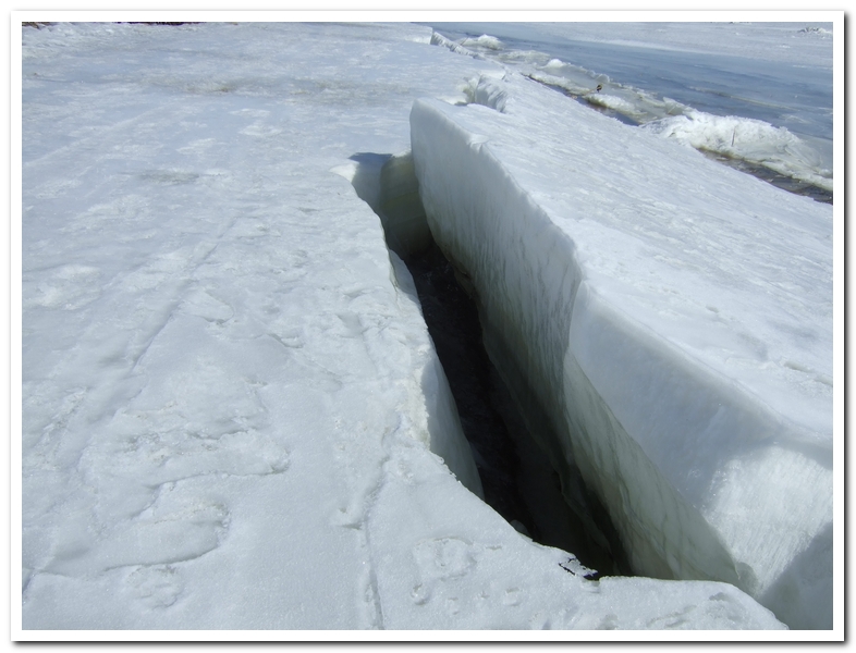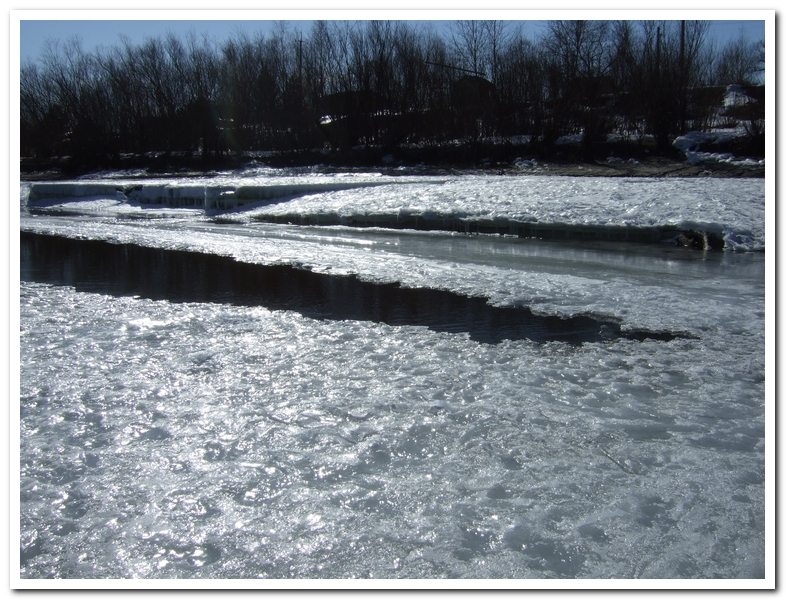 Вырвался сегодня на рыбалку, на сига. Я так думаю, что это закрытие сезона. С берега на лед перебирался по настилу из веток. В конце дня пришлось обходить уже метров за 300. У берега промоина удлинилась и расширилась. Для проверки подходил к ней с пешней, проверяя толщину льда. В полутора метрах пешня уже пробивала лед. Назад шел по льду поверхность которого уже разрыхлилась. Так что пора завязывать с ледовой рыбалкой.