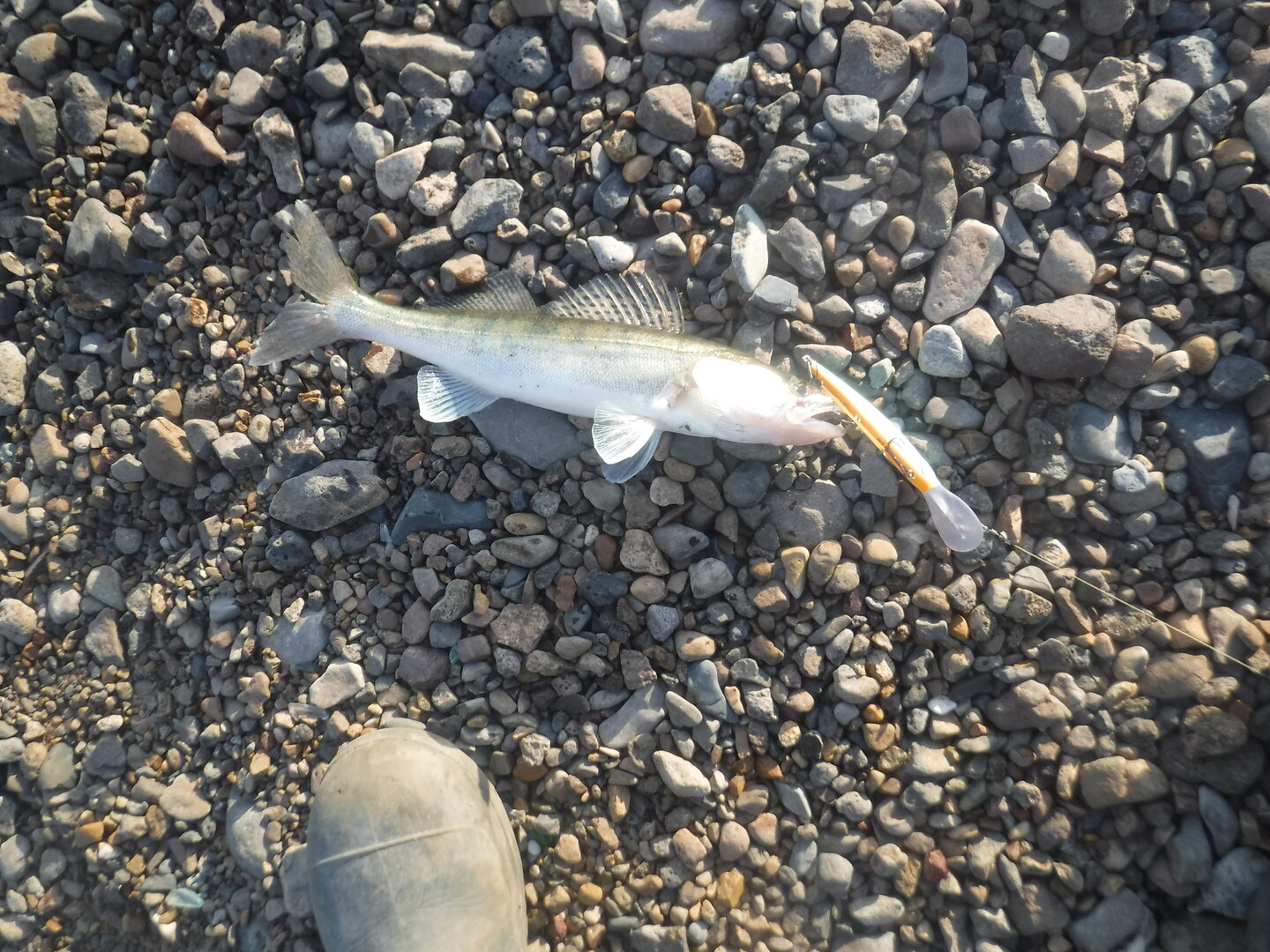 Начал ловить на новый воблер с большим заглублением и не зря.Заброс и добыча у наших ног, в 19-25.Даже не успел снять резинку, что держат тройники