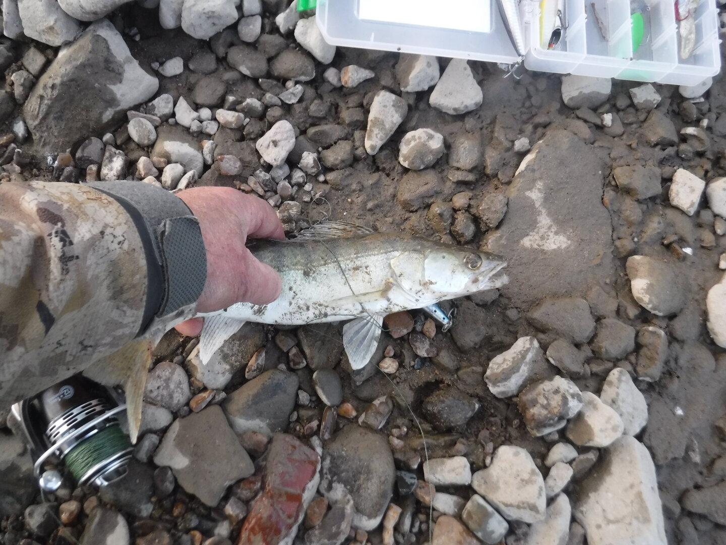 И ни кто не пристаёт: покажи место, расскажи....Когда счёт был 4 - 3 в пользу Мустеллы, третий наш коллега, поймав одного судака и оторвав три блесны, пошел домой. Я через какое то время тоже засобирался домой, сказав Васильичу, что бросаю воблера последний раз и домой. Этим последним забросом, цепляю четвертого судака, счет равный