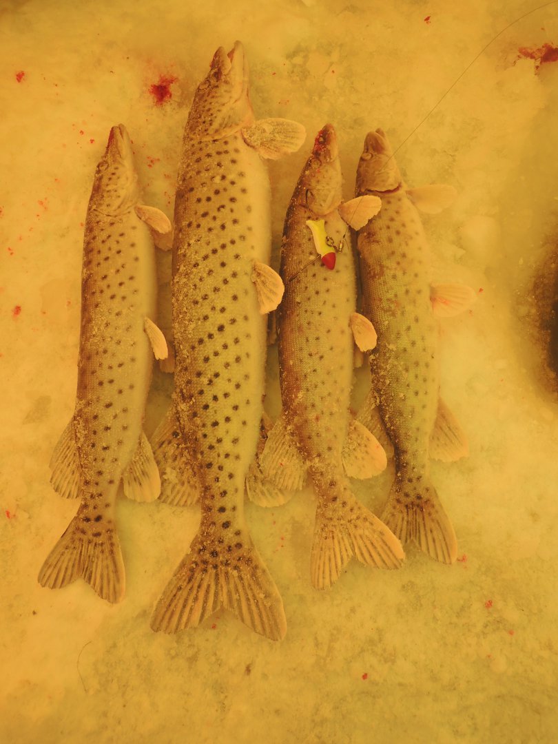 Григорий,такие балансиры я уже юзаю 2 рыбалки,работают отлично.Только вместо тройника поставил овнеровский двойник,хотя тоже иногда,цепляет,зараза,за тело балансира.Я для себя называю эти балансиры карателями,зубастую они карают не по детски.Кстати сегодня съездил, посидел, помахал. Началось все утром, сел в машину, а термометр и говорит: " Хозяин ты чего сдурел что-ли, я вообще не понимаю чего на улице происходит" и вместо температуры показывает два прочерка. Дошел до места, начал бить лунки и тут проблема, из под льда прет вода. Т.е. пробиваешь лунку и вода из нее выливается на лед, начинаешь бить вторую и вода со льда стекает в нее. Ну преодолел все трудности( за день 5 лунок), глубина( со льдом) от 120 до 250см, сел и понеслось. Как у Тимы херась, не было ни разу, но за день около 30 штук, в основном шнурки. По итогу взял 4 штуки похожих на щук и два шнурка забагрившихся за брюхо. Обловил вот такие балансиры: Посмотреть вложение 60524