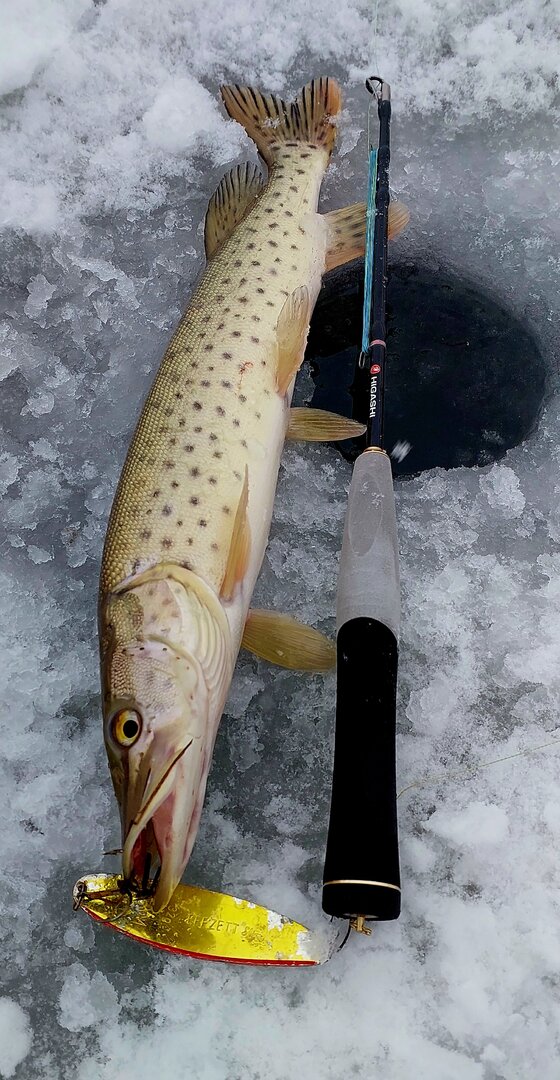 На улице -22°, но для поиска рыбацкого Счастья, это не помеха. Да, еще Луна полная, а мы всё равно едем на лед, искать Зубастую красавицу! На реке просто благодать, тишина, слышно, как на деревьях шелестят засохшие листья. Лед уже довольно таки толстый, но буры с шуруповертами, решают проблему бурения лунок в большом количестве . Что естественно облегчает поиск Щуки. Щука нас порадовала, была активная практически всю сессию, которая длилась пять часов. Приманки, которые сегодня работали, это ратлины ТцуЁки, балансиры и краб кислотного цвета. Удочки однозначно HIGASHI.👍 Рыбацкое Счастье сегодня мы нашли! Шикарные поклевки, сходы, вываживание с глубины активных Щук. Это то, о чем мы мечтали, когда ехали на речку! Взял пять штук на юколу, остальные вернулись в родную стихию Благодарим речку, спасибо ей за доставленную рыбацкую радость! До встречи речка!