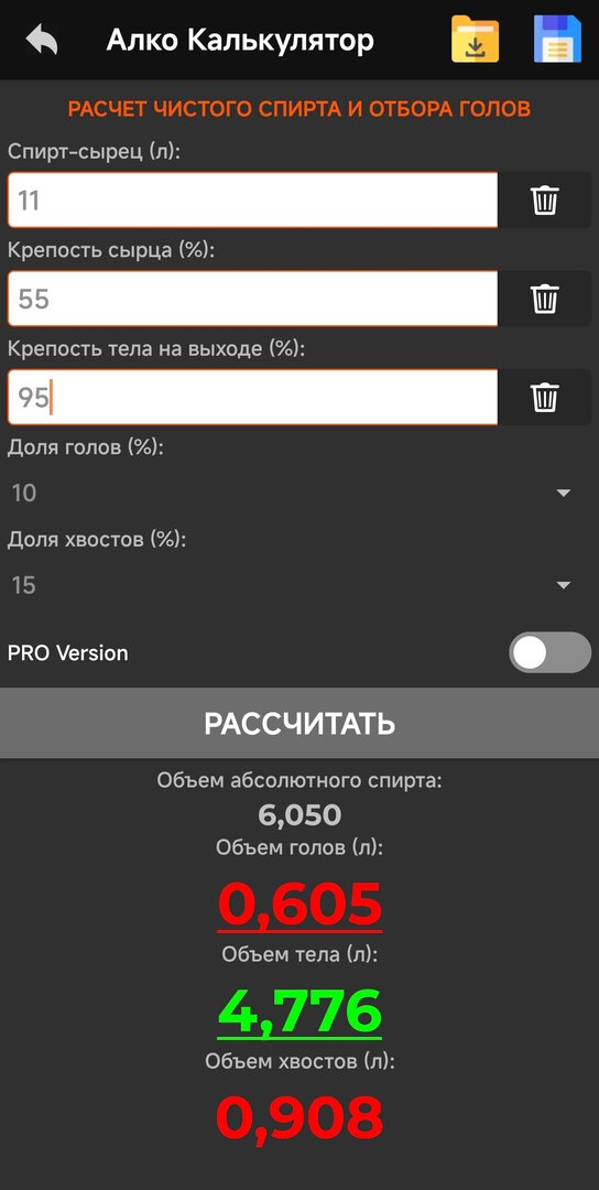 Второй перегон. Из 11 литров 55 градусов. Вышло 600 мл голов, 6,2 л тела и 1,5 л хвостов.