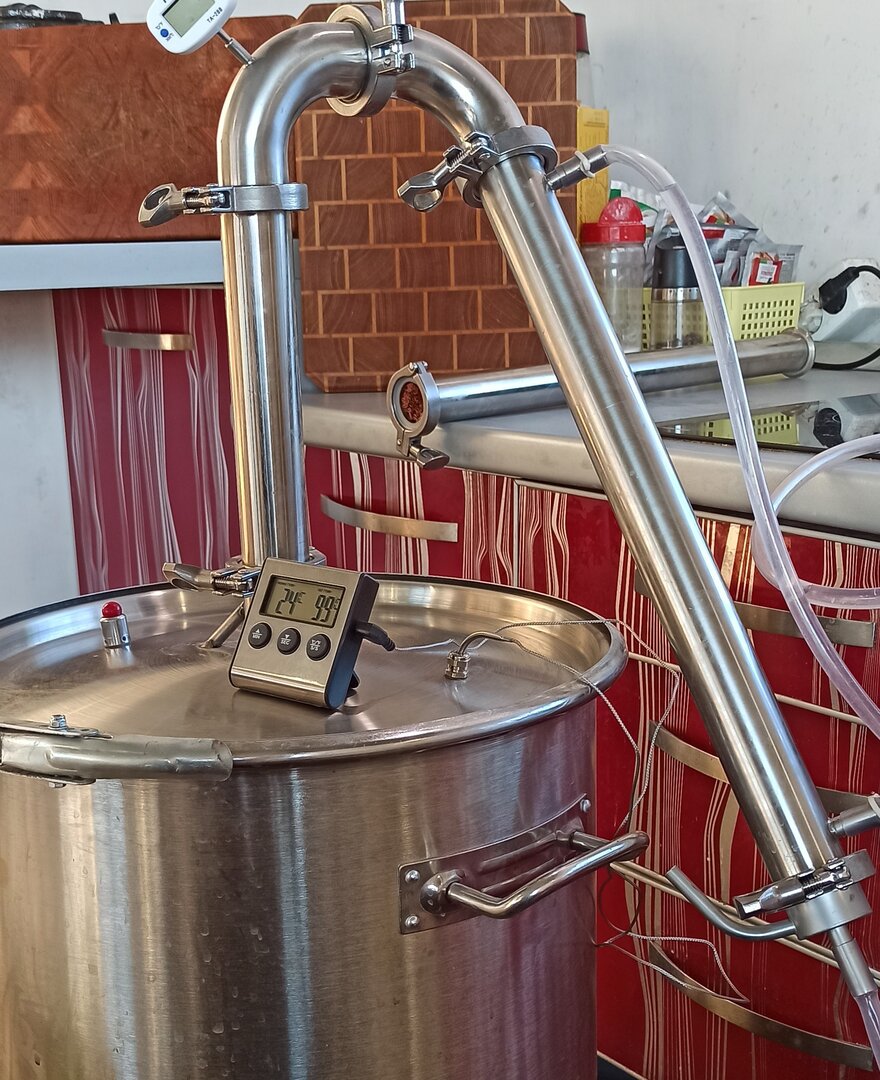 IMG_20220225_144227.jpg Не, термометры нужны. Обязательно! Вот к примеру готовишь затор для виски в ПВК. Солод вносится только в при определенной температуре +63С , а еще есть термопаузы внесения крупы, варка, температура внесения дрожжей. Да и при перегонке то же нужен контроль температуры. Причем как графики не строй, все равно отклонения будут. Тут и влияние температуры охлаждающей воды, и температура воздуха в помещении влияет например на тот же медный шлем и др. части аламбиков. Даже движение воздуха влияет! У меня конечно проф. термометры с передачей данных по радиосигналу с мобильным блоком и сигнализацией. Что бы не бегать каждый раз, не смотреть какая и где температура. Есть и автоматика для полной автоматизации процесса. Но контролировать все равно нужно. Тот же отгон тела при дробной нужно вести до +93С в кубе. Это прям закон правильной перегонки! Как это проконтролировать без термометра?!!