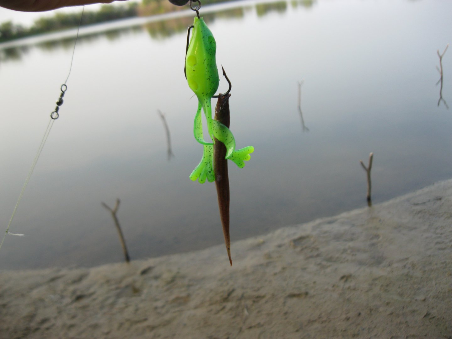 При прочесывании озерца в поисках змея, был заарканен неопознанный зверь.