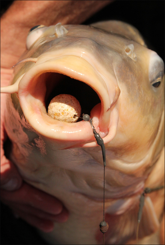 Насадочные бойлы, 24 мм, от FunFishing со вкусом Monster Crab были задипованы заранее, и томились в ожидании собственной главной роли. Уже практически в темноте, Юра забросил три удилища, все на ближнюю бровку, в самое глубокое место. Течение снесло 150-грамовые грузила под углом, примерно в 45-градусов, и они уперевшись в бровку, заброшенные оснастки остановились и позволили их натянуть. Ночь прошла спокойно, без поклевок, лишь с одиночными “пиками” сигнализаторов, вызванные постоянным сносом оснасток под воздействием течения. Утром следующего дня, Юра перезабросил удилища и отправился за “родным” колесом к его машине, в тот самый гараж, где вчера ему выдали “времянку”. И как только он уехал, буквально через пол-часа, на втором удилище сработал сигнализатор. Моя подсечка была небольшая, я бы даже сказал короткая, но резкая, особенно учитывая, что удилища были установлены практически в вертикальное положение, чтобы уменьшить количество лески в воде, тем самым ослабив давление воды (течения) на оснастку, и уменьшив вероятность зацепить лески входящие в воду проплывающими корягами, ветками и мусором. Удилище сильно согнулось, фрикцион завизжал с нарастанем и рыба быстра ушла в лево, под самый берег, чуть не зацепив крайнее левое удилище, несколько минут сопротивления, резкие и сильные рывки, совсем не похожие на то, как карп мотает головой, необычная внезапная легкость и конец сопротивления, в воде показалось что-то светлое и длинное, издали напоминающее судака. До этого я никогда не ловил усачей, хотя и знал, что есть даже специальная категория рыболовов, специализирующихся на ловле усача или по английски – barbell. Это был экземпляр, весом около 2,5-3 кг, с длинными, порядка 4-5 см усами и мелкой чешуей. Я аккуратно положил его на смоченный мат, и освободив от крючка переместил его в карповый мешок, отправил в воду, чтобы потом сфотографироваться с рыбой, которую я до этого не ловил. Через некоторое время приехал Юра, и был удивлен, увидев мокрый мат. Я показал ему усача, и Юра поведал мне о том, что и усач оказывается относиться к карповой породе рыб. Далее, все шло по плану, мы кормили зону ловли, строго соблюдая временные промежутки, и каждый вечер и утро Юра перебрасывал удилища, меняя и тем самым освежая оснастку и очищая лески от налипшей на них грязи, водорослей, травы и прочего. На ночь, во избежание сносов лески течением, Юра поменял грузила и увеличил вес до 180 грамм, и обязательно проверив работу и «настороженность» сигнализаторов мы пошли спать. В ночь нас разбудила поклёвка очередного усача, и чуть позже сома, который позарился на свежий бойл. Сом был небольшой, около 6-7 кг, красивый, как будто высеченный из светло серого гранита, с черными точками. На утро, Юра решил еще раз поплавать на лодке и более тщательно изучить дно вокруг нашего лагеря и далеко за его пределами. Тщательно исследовав акваторию и вернувшись в лагерь практически к темноте третьего дня, Юра высказал мысль о том, что если в наступающую ночь не будет поклевки карпа, то вполне вероятно, что наутро нам придется перенести лагерь выше по течению, примерно на 500-700 метров, там он обнаружил более глубокую бровку и даже яму глубиной до 12-13 метров. Все эти прелести находились примерно там, где Юра ловил карпа в 2009 году, и достаточно успешно. Тогда он поймал около 35 рыб за десять дней, самая бо