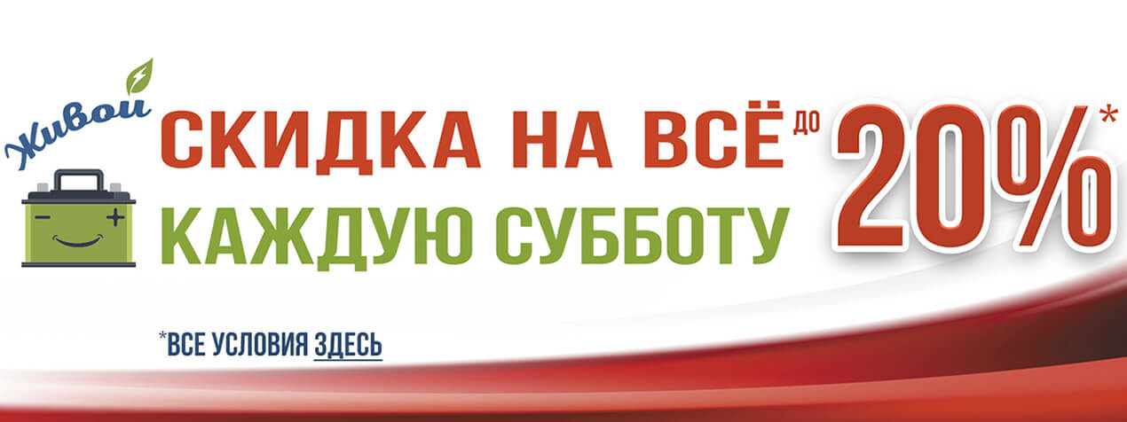 Каждую субботу Вы получаете скидку до 20% при покупке любого товара, представленного на сайте miraccum.ru и в магазинах «Мир Аккумуляторов».