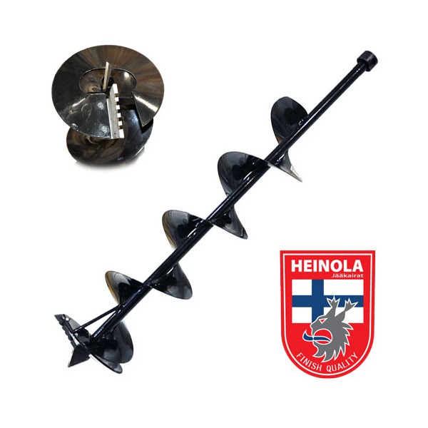 Шнек HEINOLA Moto Hard имеет один режущий зубчатый нож и мощный стационарный центрирующий нож. Шнек имеет очень прочную конструкцию. Основное предназначение шнека – сверление льда в специфичных условиях, когда в нем могут встретиться вмерзшие ветви деревьев, камыша, листвы и т.д. В таких тяжелых условиях работы один нож значительно снижает нагрузку на работающий двигатель. Этим шнеком можно продолжать работу по сверлению лунок даже при небольших повреждениях ножа. За счет простой конфигурации ножа, его несложно заточить. Скорость сверления льда шнеком HEINOLA Moto Long несколько ниже, чем у двухножевого шнека. Шнеки изготавливаются двух размеров: диаметром 210 и 260 мм. Шнеки комплектуются моторным болтом М8, ключом и пластиковым защитным чехлом. Материал ножа – углеродистая сталь. Для сверления более толстого льда, шнеки совместимы с удлинителями HLE8 – 300 и HLE8 – 490.