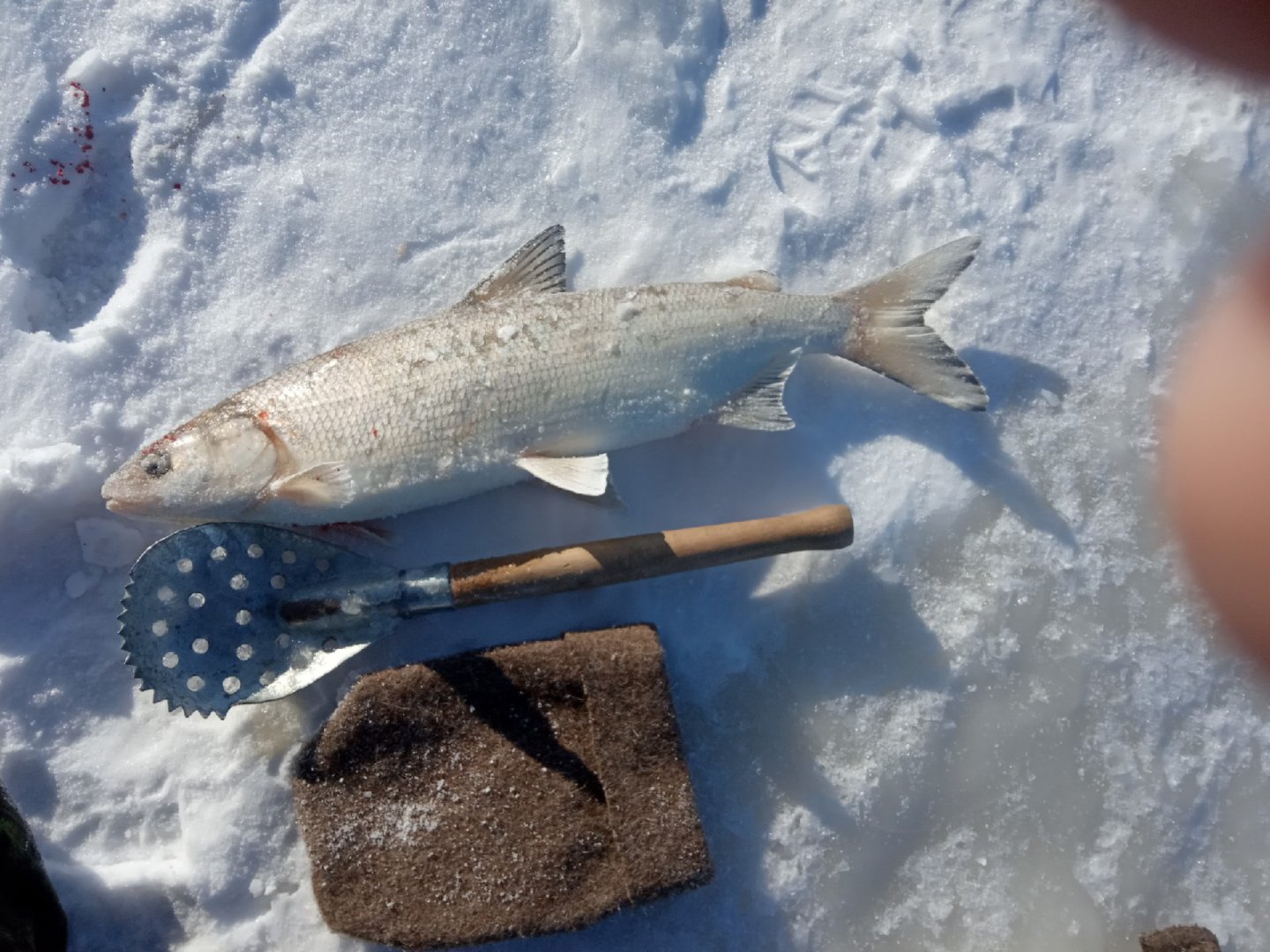 И третий подход, часа в три. Чувствую в левой лунке какое то шевеление по леске, а правая вообще провисла и через мгновение повела в сторону как карась и повторлся такой же сход как и во второй раз.