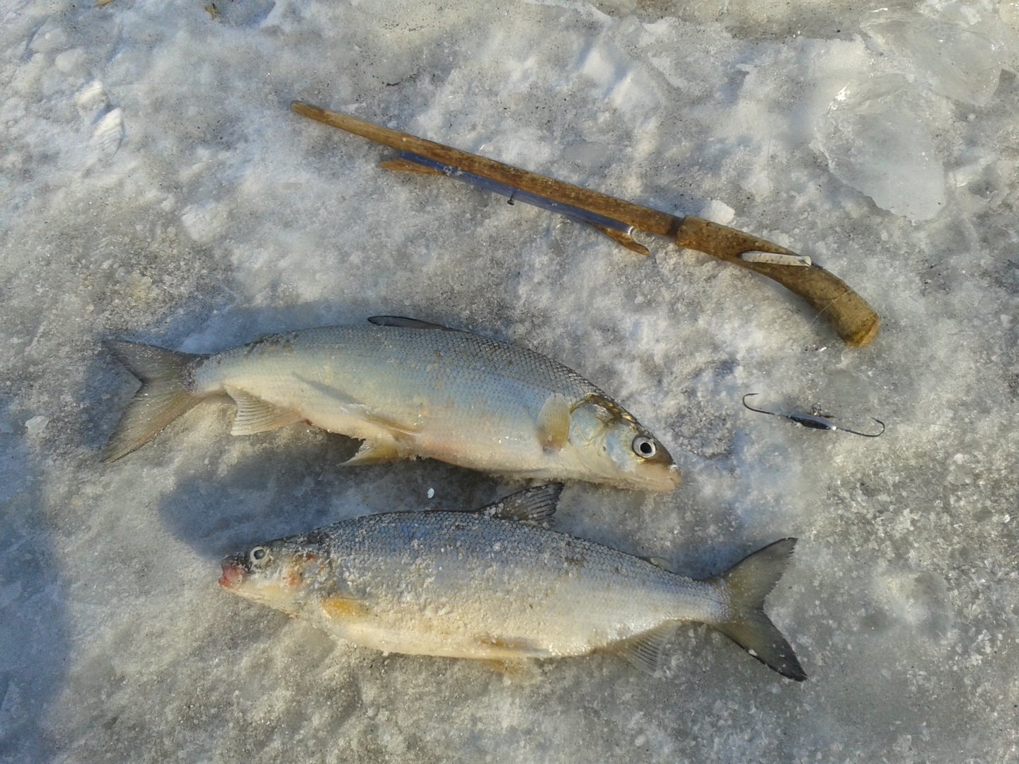 Серёга,я бы ни за что не отказался,но вот те,что покрупнее,с незавидной регулярностью сбегали с крючка под лункой.Течение сильное,леска в лёд врезается.