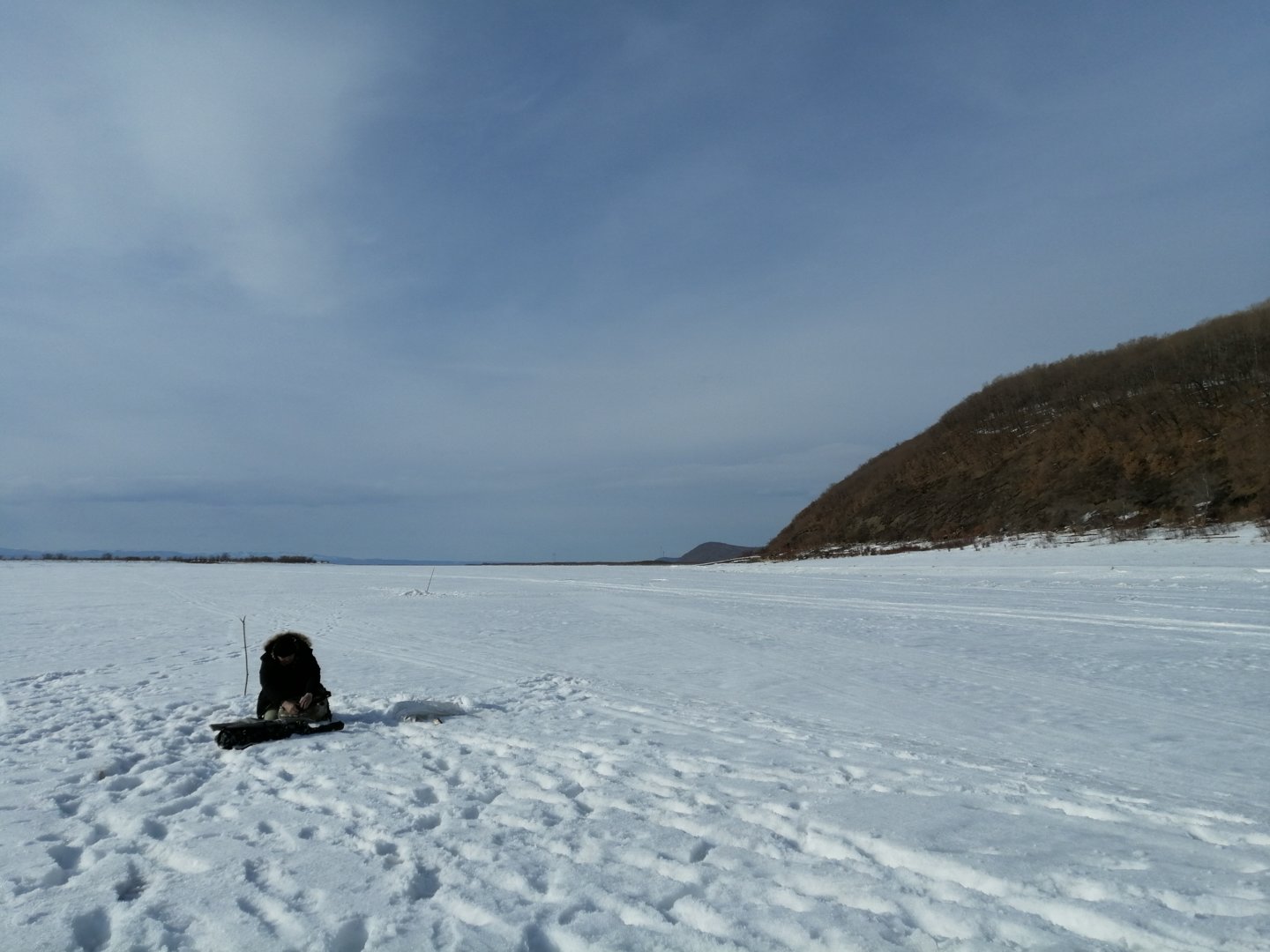 Съездили сегодня с Сергеевичем на рыбалку,устроили предварительную закрывашку сезона.Прибыли на место,осмотрелись.Не были там примерно месяц,вода изрядно упала.Поэтому решили пойти поближе к глубине.Пробурили первые лунки,лёд толщиной 60-70 см,бурится уже плоховато,ледяная крошка из под бура влажная,но хоть воды на льду пока нет,а то было бы совсем печально лёд дырявить.