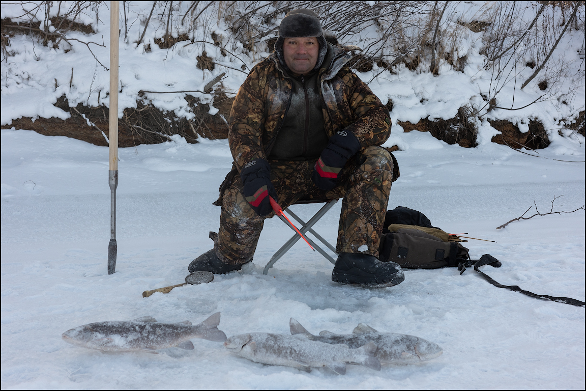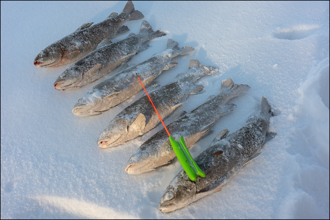 В общем, по прибытие на место термометр в машине показывал минус 37. Но для горняшки такой мороз не страшен. Во-первых, здесь практически никогда нет ветра, а во-вторых, ты постоянно двигаешься. Мерзнут только руки, когда насаживаешь приманку.