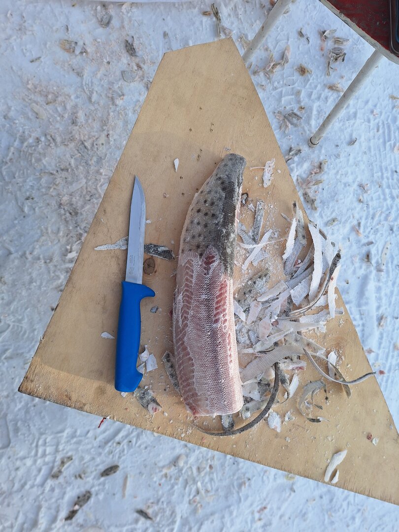 Так на фото я шкуры не вижу, да и собакам она вроде отдана. )Не хотелось в квартире с ней вошкаться. Да и таким способом, как я делал, получается срезать только чешую, остается шкура, а это самое вкусное)