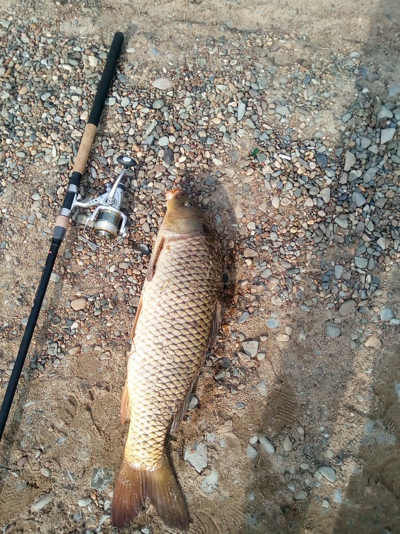 Пока убирал мусор , прилетела стайка "олигархов" и шась сразу к пакету с прикормкой ( это я так голубей зову , потому как тоже живут за счёт народа)...вообщем пока отгонял от кормушки этих дармоедов , призошла потяжка и по удилищу и визгу бейтранера , понял - это мой . В силу привычки , адреналин уже не так сильно орудовал по сосудам и спокойно обуздав ретивого , выволок его на берег ( опять вываживал без подсака).