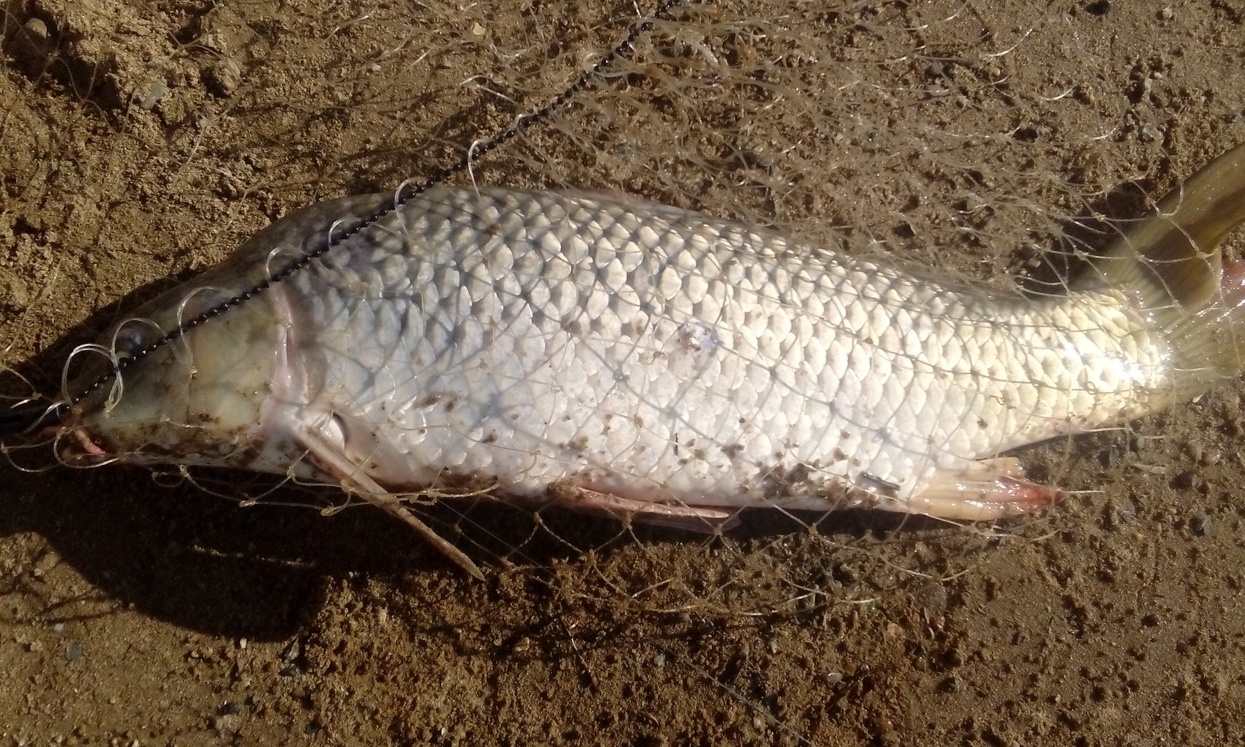 Второй оглушил визгом бейтранера уже через несколько минут . Я никогда бы в жизни не подумал , что роготулина торчащая у берега в поколено воды , заинтересует этого кабанчика в качестве способа побега. Делая резкий рывок , он подплыл к роготулине ( кто то забыл вытащить) и давай возле неё крутится . Хорошо что роготулина не сильно была воткнута и сделав ещё несколько попыток , сазан сдался .