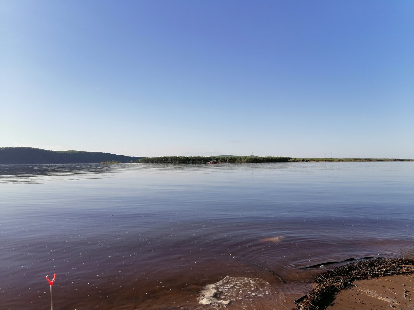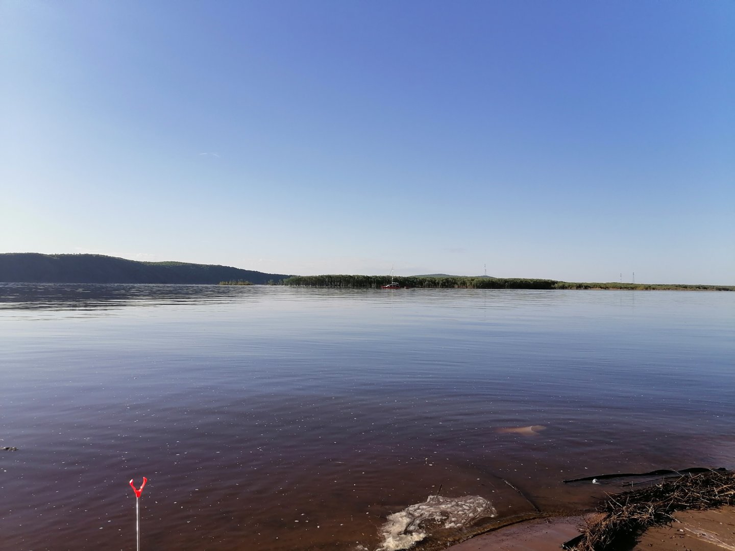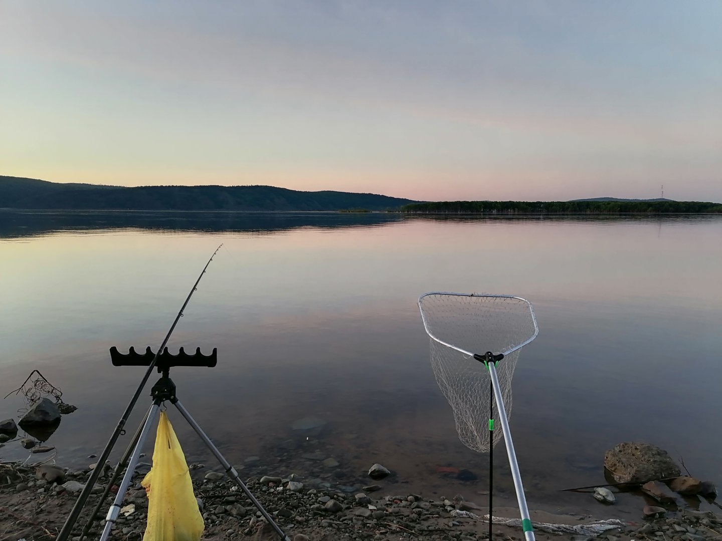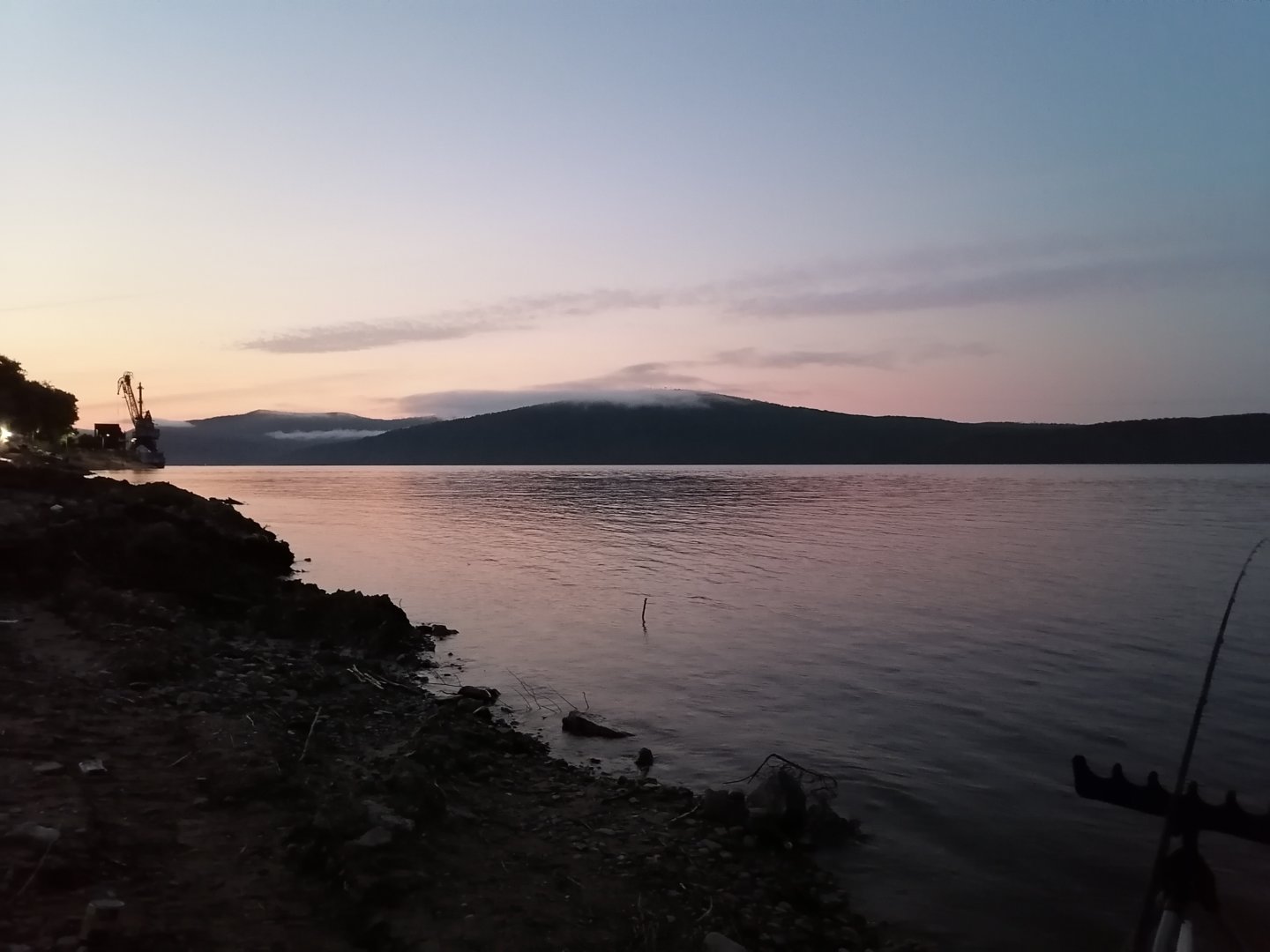А вот так было на рассвете.Тут на прошлой неделе ишшо плавсредство одно мимо города проходило.