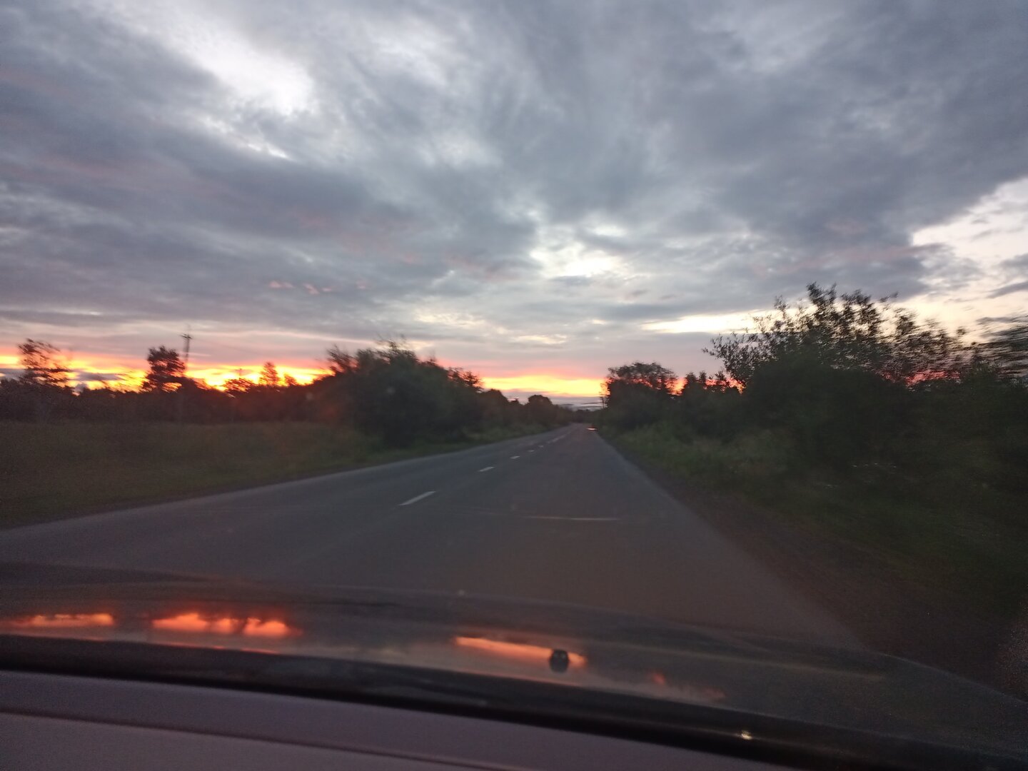 В этом месте, если я его правильно понял, большая отмель. Нужно было переместиться ниже. Там не такой чистенький бережок, но свал поближе к берегу.Наконец удалось вырваться на рыбалочку. Подъем в четыре, в пять выезд. На пути к Амуру нас с сыном встречал очень яркий рассвет.