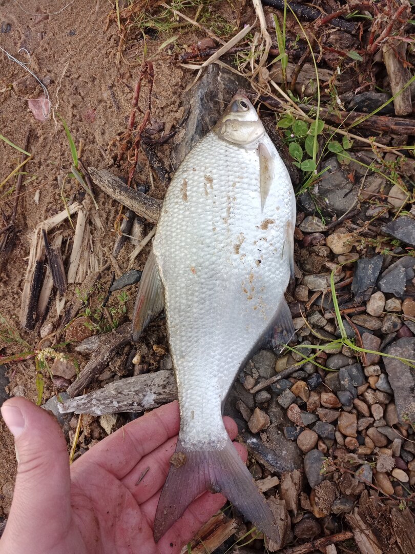На этом участке реки очень сильное течение и глубины совсем нет. Клевали только лещики небольшого размера и исключительно на кукурузу. Хотя один достойный боец попался, но метрах в пяти от берега махнул хвостом и был таков.